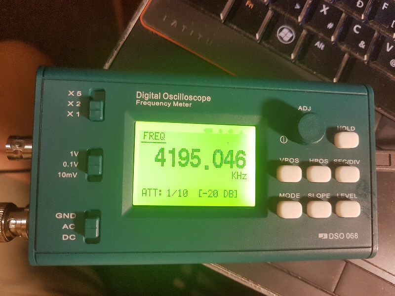 Kicsit kísérleteztem és most még rosszabb a helyzet, most már be sem indul az oszcillátor... ![]() Sikerült megmérni frekvenciamérővel, a csatolt kép szerint 4,195046 MHz-et mértem, így ki is jön a nagy sietség. Vettem egy új, 4,194304 MHz-es kristályt és egy 4-40 pF-os trimmer kondenzátort. Beforrasztottam az új kvarcot, ekkor még működött, de még mindig túl nagy volt a frekvencia, így még 4,194910 MHz-et mértem. Ezután kiforrasztottam a 22 pF-os SMD kondenzátort, amit sikerült el is veszítenem, sehol se találom. ![]() Beforrasztottam helyette a 4-40 pF trimmert, és ekkor már nem indult el rendesen az oszcillátor. Volt olyan állása, ahol 3-4-et villogott lassan az órakijelző kettőspontja, aztán megállt, de ez volt a maximum, egyik pozícióban sem produkált stabil órajelet. Ezután még megpróbáltam pár fix, nem SMD kerámia kondenzátort betenni a trimmer helyett, volt itthon 33 pF, 68 pF és 100 pF. de egyikkel sem indult el már többet. Frekvenciamérővel mérve össze-vissza ugrál a mért frekvencia 50 kHz és 2 MHz között. Szerintetek most teljesen kinyírhattam valamit? Vagy ha veszek bele 22 pF-ot, akkor azzal még mennie kellene? ![]() Igazából abban sem vagyok biztos, hogy 22 pF volt az elveszett kondi, ezt az értéket csak a CD4521 + 4,194304 MHz-es kristály alapkapcsolásában találtam. A hozzászólás módosítva: Máj 31, 2018