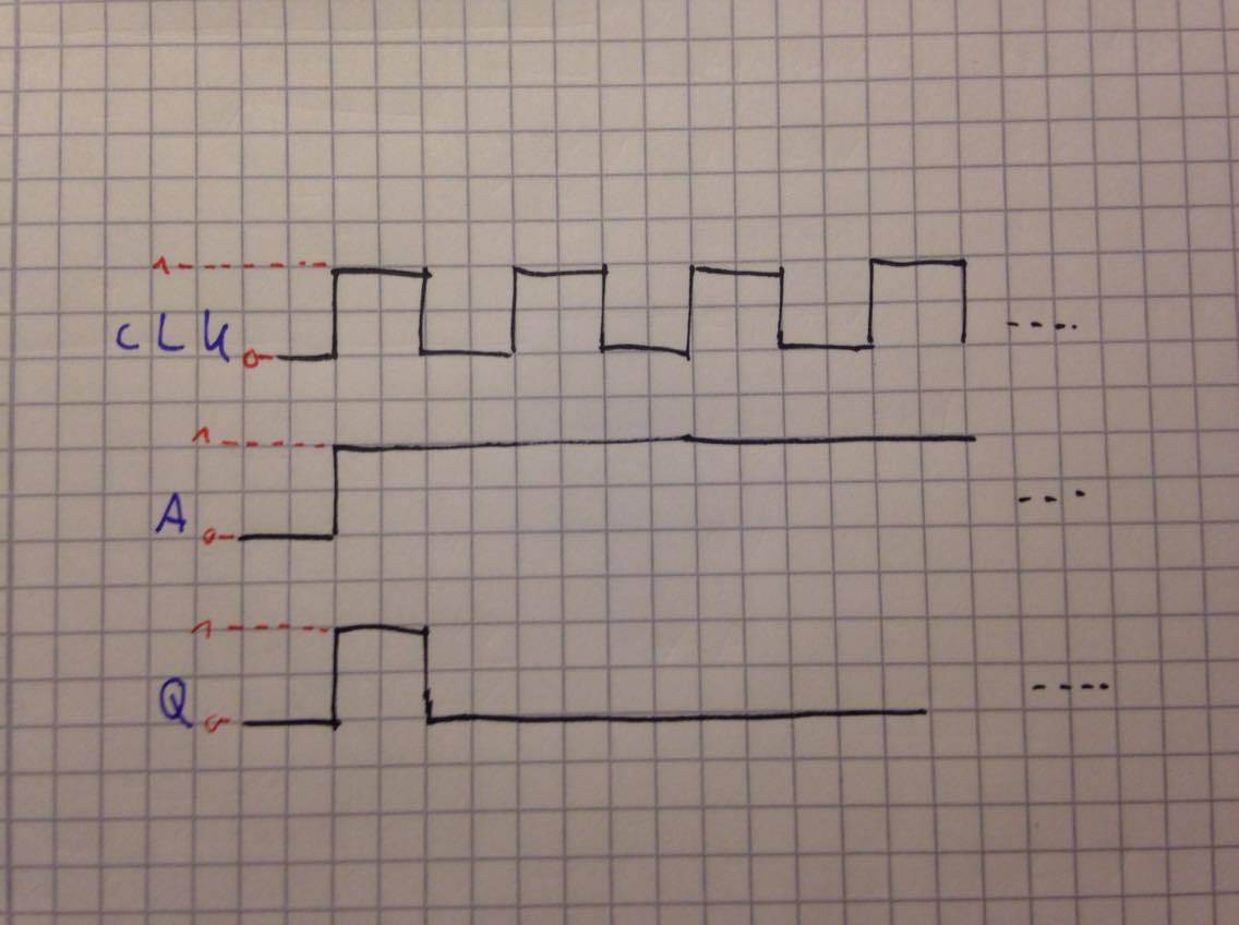 3 félév digitális technika az egyetemen, és nem tudom megoldani a következő problémát: Adott egy regiszter egyik bitje, ez órajelre 1-be billen, és egy jó darabig úgy is marad. Nekem kéne egy olyan kapu, áramkör, valami, ami érzékeli az A regiszter változását, és ekkor a "Q" kimenetén ad egy rövid impulzust. Ennek kell majd resetelnie egy másik áramkört. Minél egyszerűbb kapcsolásra lenne szükségem. Természetesen ha az "A" regiszter 0-ba majd ismét 1-be váltana, akkor megint kellene az impulzus. A kapcsolásnak nem kell szinkronnak lennie, de nem baj ha az. A válaszokat előre is köszönöm!