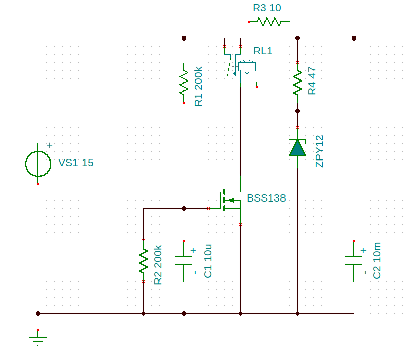 Nem nagyon lesz jó ez az időzítős kapcsolás amit rajzoltál, mert amikor átkapcsol a relé vagyis ahogy kinyit a FET 12V esik a zéneren és lehúzza a feszültséget a puffer kondiról ahol 15V-nak kellene lennie. A másik, meg hogy semmi nem korlátozza a zéner áramát. A mellékletben rajzoltam egy elképzelésemet, amjd nézd meg légyszi ha ráérsz. Mi a véleményed?