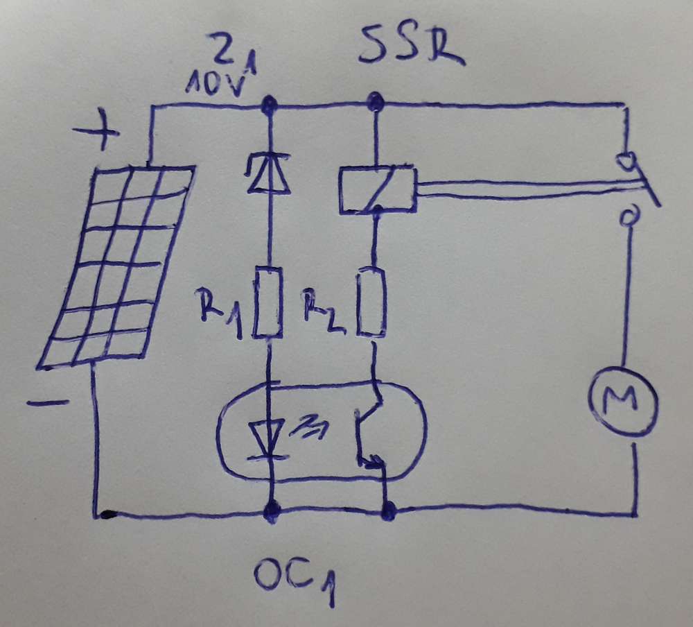 Feltételezve, hogy a szivattyúd is a napelem táplálja. Ha nem, akkor nyilván azt megfelelően kell bekötni.