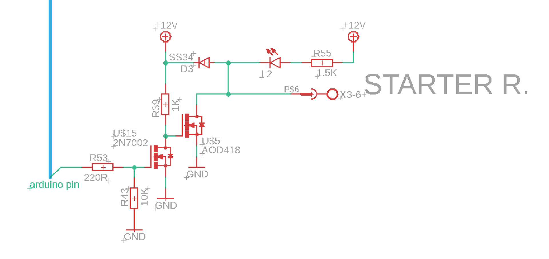 A P-FET-es verzió működik. Azzal nincsen gondom. Mindenképpen GND-t kell kapcsolnom. Az L2 az visszajelző LED, egyikfele a kapcsolt kimenetre a másik a 12V-ra, A D3-as dióda a kimenetre kötött tekercs miatt van rajta. A szoftvere-s megoldás azért nem jó, mert indulásnál ameddig az Arduino nem éled fel a program nem fut addig is van kimenet. (egy pillanatra felvillan a Led) illetve, ha az Arduino elhalálozik akkor állandóan meglesz a kimenet.