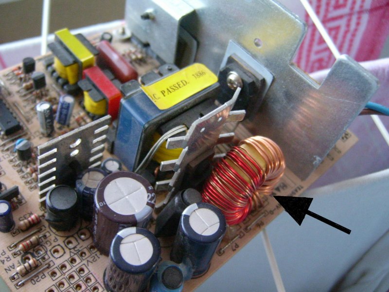 Üdv mindenkinek! Azt szeretném kérdezni, hogy a képen látható PC-tápban, a nyíllal jelölt tekercsnek mi a szerepe?