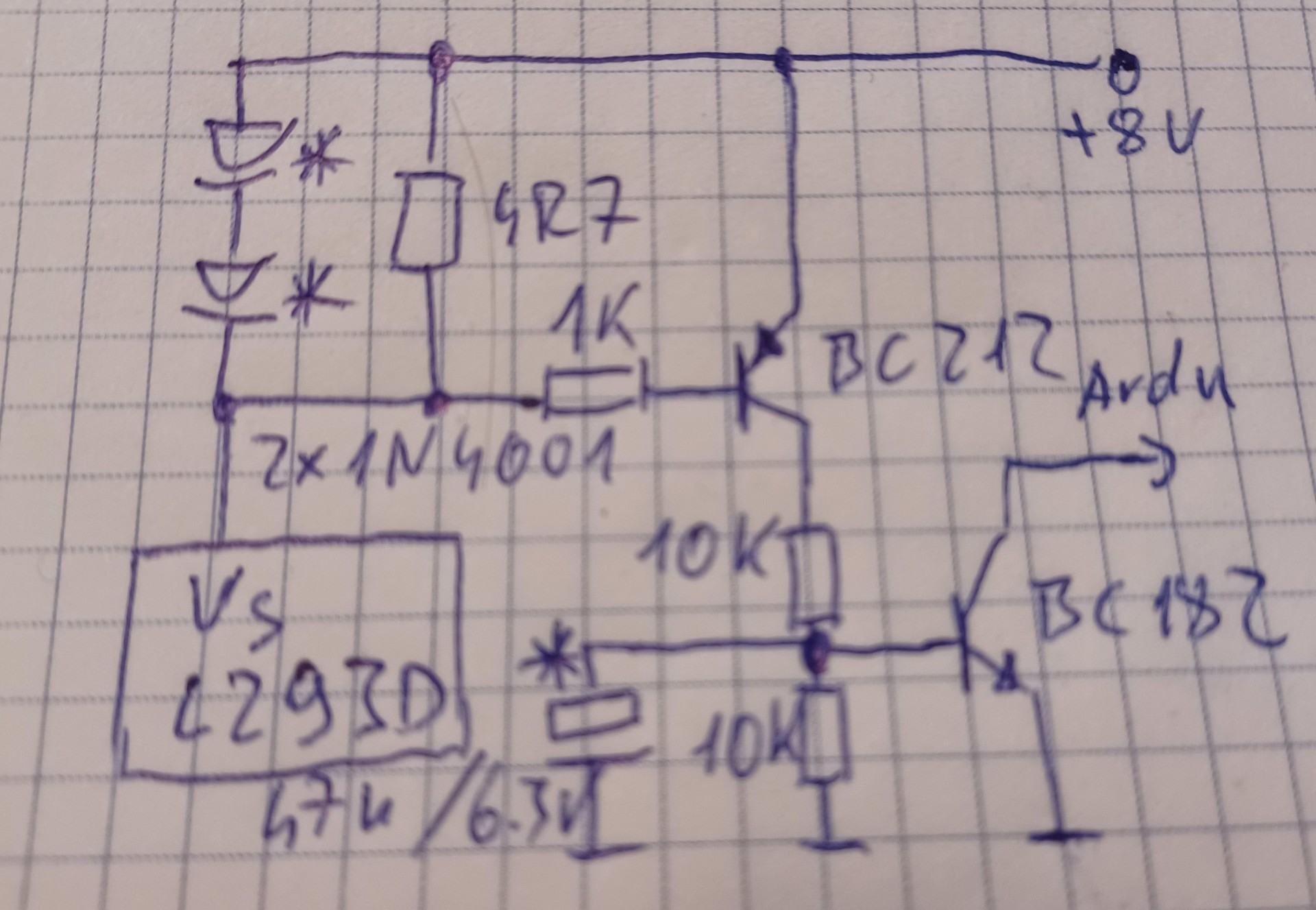 Először az Arduino analóg bemenetére akartam a túláram jelet adni, de igazából a rajzod alapján is teljesen észszerű egy logikai bemenetet alkalmazni. Az Arduino logikai bemeneténél megcsinálom a felhúzást a saját +5V-os tápjára (ahogy látom, ez lesz a BC182 tápja is egyben), és akkor a programot az fogja aktiválni, ha 1-ről 0-ra váltok. A felhúzáshoz mekkora ellenállást célszerű alkalmazni?