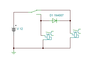 Hello! Ha jól értem, ezt szeretnéd.. Célszerű a két relé tekercsre reverz diódát tenni, ne szikrázzon a kapcsoló. (Nem rajzoltam rá, hogy ne zavarjon, de ha kell megteszem..)