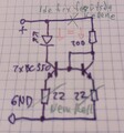 Szerintem ez egy klasszikus áramtükör iskolapéldája, azaz mindkét oldalon azonos áram lészen. 22 Ohmok ezt még precízebbé teszik, de minek. Akkor volna értelme, ha a jobb oldalon fix feszültség lenne, mert akkor a másik oldalon állandó áram folyna, azaz ugyanúgy világítana. Ez most ugye nem igaz. Lehetne annak is értelme, hogy a tranzisztor füstölje el a felesleget, de ebben az esetben inkább az ellenállás. Akkor a fene tudja mire gondolt a tervező, de ugyanakkor bármilyen LED-et (piros/sárga/zöld/kék) tesznek bele a design miatt, ugyanúgy (mármint áramot tekintve) fog világítani. Ez az én értelmezésem...