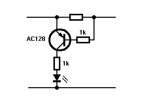 Biztosan találsz még a fiókodban régi germánium tranyót, ezeknek van egy nagy előnye a Si tranyókkal szemben: már 120..150mV-ra kinyitnak! Tehát a mellékelt rajzon nem méretezett ellenállás értékét ohm-törvénye alapján, fenti nyitóval kell a kijelezni kívánt áramra méretezni.