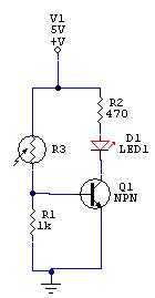 Feszültségosztót méretezel, aminek az osztásaránya sötétben kinyitja a tranzisztort, világosban pedig nem.