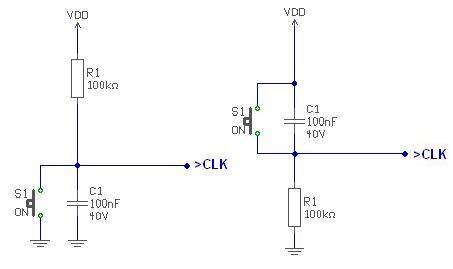 Csak azt szeretném kérdezni, hogy ez a "prellgátlás", működik úgy is, ahogy a jobb oldali ábrán ? Ugyanis a másik verzió, amit rajzoltál, az akkor léptet, amikor elengedem a gombot, a másik pedig a megnyomáskor. Tehát csak az érdekelne, hogy egyformán jó-e így is úgy is. Amúgy ez az egész mennyire fontos? ennyire rosszak a nyomógombok ?