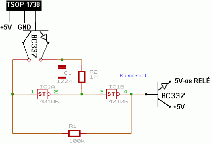 leszimuláltam a dolgot, és arra jutottam, hogy az ic-nek 0,1s-es szünet kell a "flip"-ből "flop"-ba váltáshoz. tehát elvileg nem zavarhatja be a távirányító egyedi jele(a sok 0 meg 1), mert egyben fogja érzékelni. A másik, amit felfedeztem, hogy a bc337-es nem jó erre a célra. Egyszerűen nem viselkedik úgy, ahogy kéne. Mivel helyettesítsem?