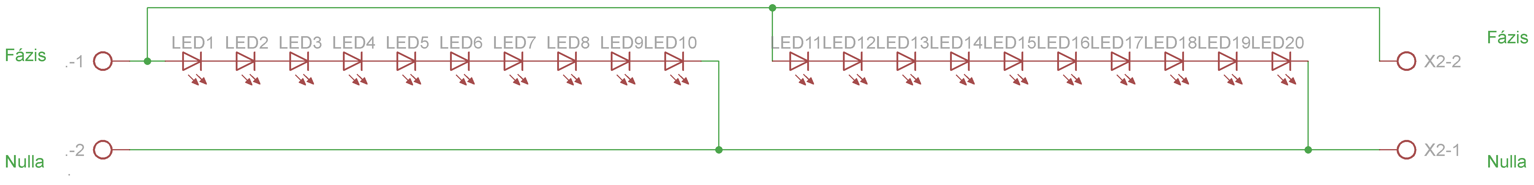 Mellékeltem egy rajzot. Így vannak bekötve vagy ledek vagy ízzók. Ezt onnan tudom, hogy gyakorlaton sokszor volt időnk és egy pár méter ilyet szétboncoltunk . A led helyett izzót akartam de az nem tudom hol van az eagle-ben. Üdv. Roli.