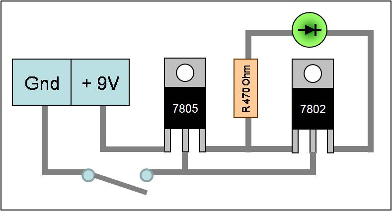 Jézus! Először azt sem tudtam mi ez... Nem kell ezt így agyon komplikálni. A feszültséget csak azért írtam, mert annak a polaritása számít az anód-katódhoz képest. Az értéke, meg csak azért fontos, mer a tápláló feszültségnek, meg kell haladni a diódák nyitófeszültségét (különben nem fog áram folyni a diódán). Ez után, amennyi a tápfesz és a diódák közötti feszültség különbségből marad, az fog esni az előtét ellenálláson. Ennek az ellenállásnak helyes megválasztásával a dióda nyitóárama beállítható. Tehát Iled=(Utáp-Udióda)/Relőtét. Persze egy IC kimeneti feszültsége terhelés hatására, soha nem adja le a tápfeszültséget (mint ahogy a GND-t sem) így nem a tápfeszültséggel, hanem a port terhelés hatására kiadott feszültséggel kell számolni. (De nagy hibát nem követünk el, akkor sem, ha a tápot számoljuk. Kivétel, ha a táp kicsi, a dióda nyitófeszültsége meg nagy..) De lerajzolom, mert százszor egyszerűbb mint gondolnád. (De a kép.amit rajzoltál, egyébként elvileg sem lenne jó. Mert a 78-as stabilizátor, csak a GND-hez képest terhelhető. A 7802-őt, meg a kimeneténél magasabb feszültséggel terhelnéd. A Led, csak simán csak felhúzná az 7802 kimenetét. Tehát ez csak akkor működne, ha az 7902 lenne. Persze a kapcsolásnak értelme akkor sem volna..) üdv! proli007