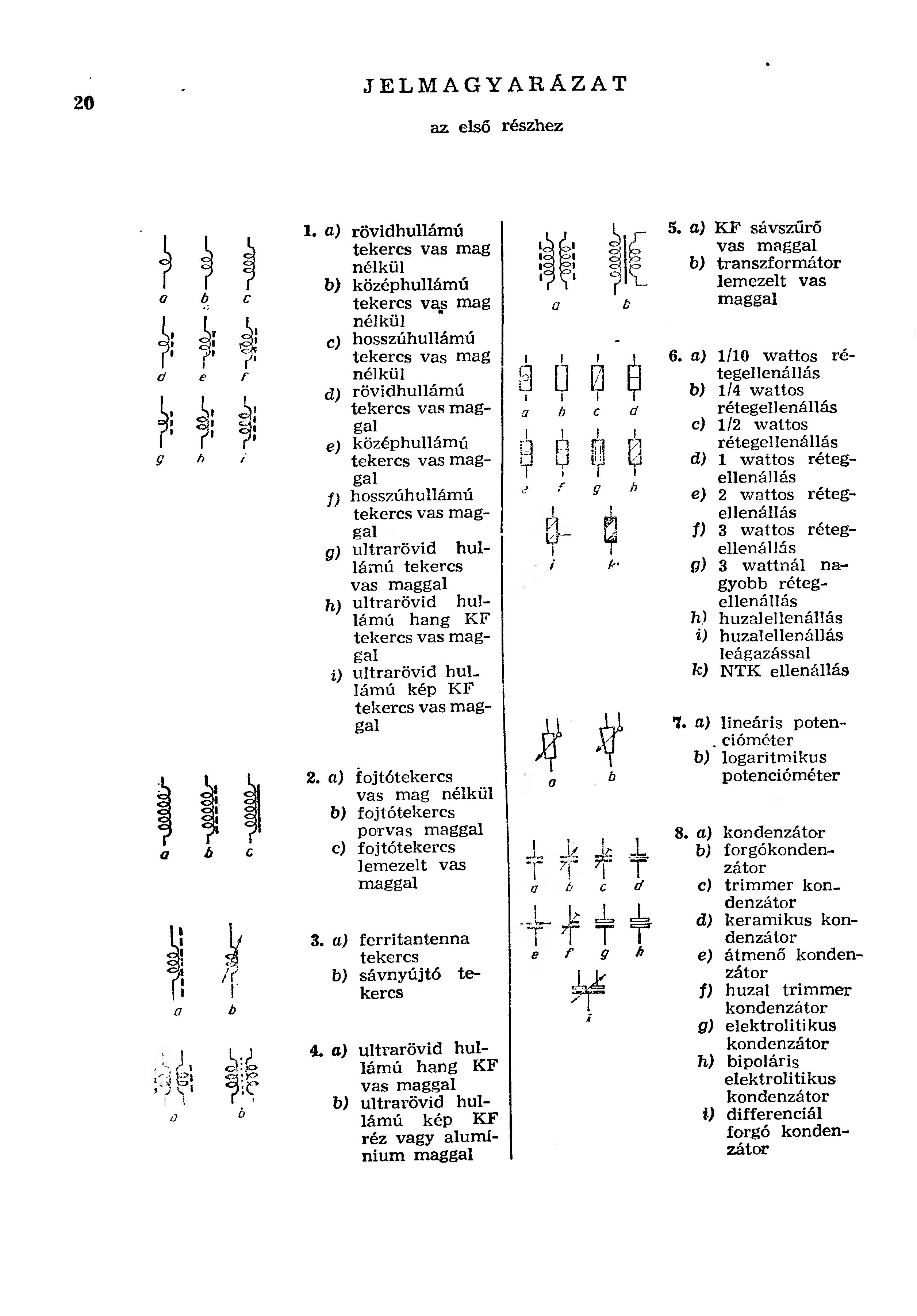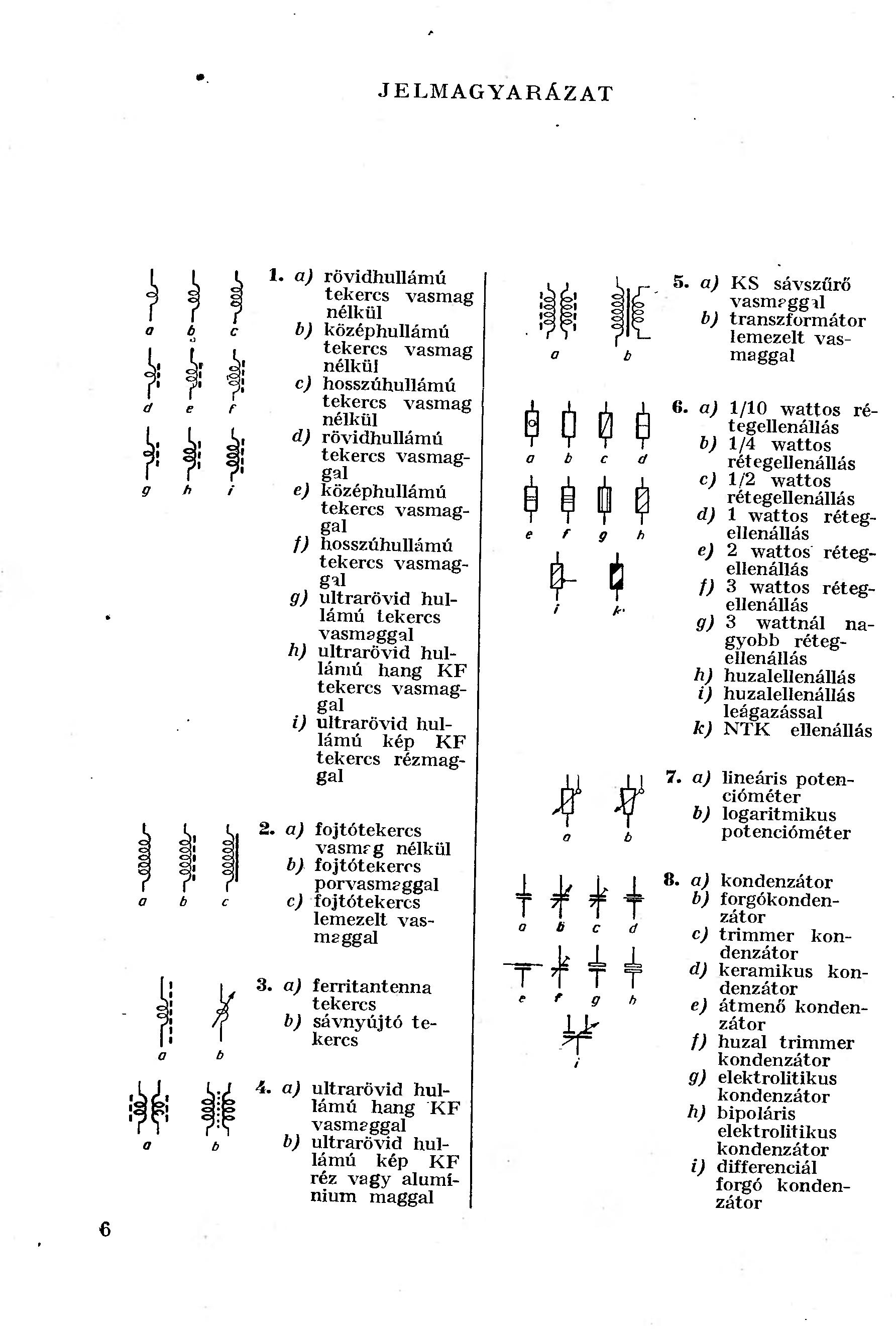 Látszólag hibásnak tűnik a jelmagyarázat, de valójában semmi baj vele. Ugyanis azt tudjuk, hogy tévékészülékekben (h,i) nincs rádióba való tekercs (e,f). Tehát ha egy tv-készülék rajzát nézzük, akkor ha "h" vagy "i" tekercset látunk, akkor rögtön tudni fogjuk, hogy hang (h) vagy kép (i) KF tekercsről van szó. Fel sem merül bennünk az, hogy középhullámú vagy hosszúhullámú tekercset keressünk egy tévében. Hasonló a helyzet a d-g tekercsek esetében is.