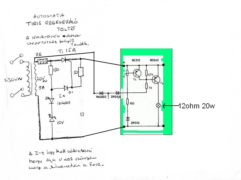 Nagyon jó ez a forum sok ügyes és hozzáértő elektronikai zseni van itt, gondoltam hátha segít valaki. A 20w ellenállás fölött levő kapcsolót szerettem volna kiváltani egy fettel vagy tranyóval, természetesen ami birja is a terhelést, csak nem tudom megoldani a vezérlését. Arra gondoltam, hogy a terhelő ell csak akkor dolgozzon amikor a tirisztor zárva van, vagyis ne terhelje a töltő áramot. Azért köszi a választ.