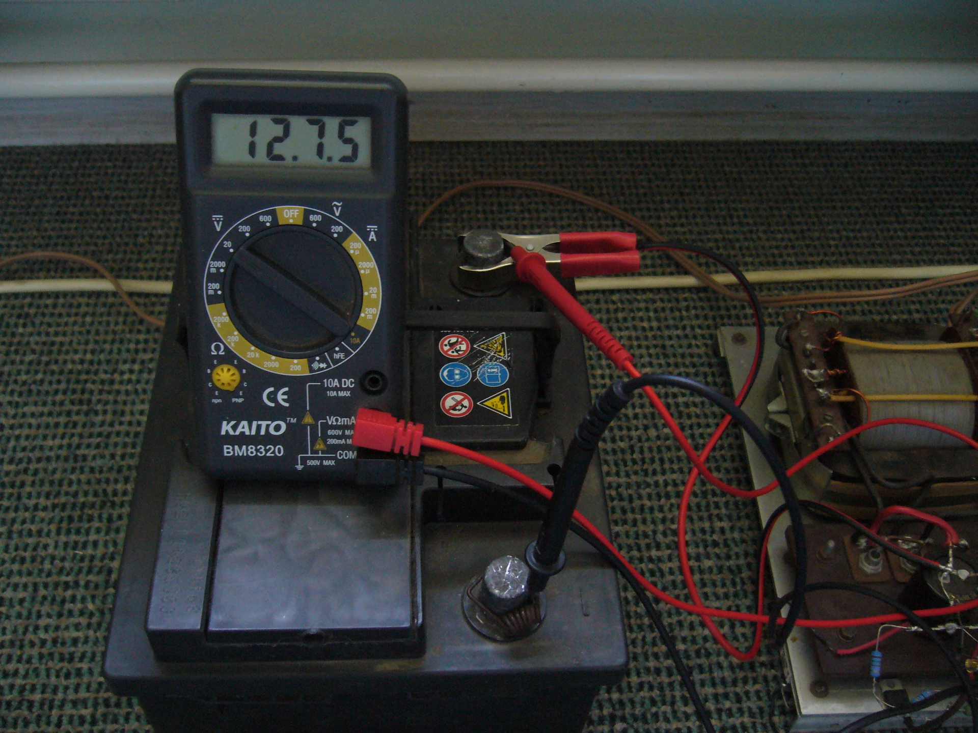 Szerintem a 10V-on akadt meg a szemed, de mint mondtam szépen felmászott volna kerek 12V.-ig, csak Ge Lee tapasztalatait próbáltam ellenőrizni, mert azt mondta hogy tartósabb merítés után nem megy vissza azonnal 12V-ig. Igaz elmondása szerint, ő is csak "pár percig" hagyja mélymerült állapotban, s úgy teszi rá a szulfátoldót, annak érdekében hogy nagyobb intenzitással, hosszabban, mélyebben küldje rá az impulzusokat. Az akkumlátor újra autóban van, odaadtam egy ismerősömnek egy hobby második autóban van, s dolgozik. Beszerelés előtt (egy nappal a második kezelés után), így festett. Mondtam neki, hogy aztán nem szidni a felmenőimet, garancia nincs rá. Azt mondja ott a másik kocsi ha ne adj isten megmakkanna. Hogy most tényleg jó, vagy a "nyárára még jó lesz" kategória, azt nyilván majd csak október után tudja meg az ember.