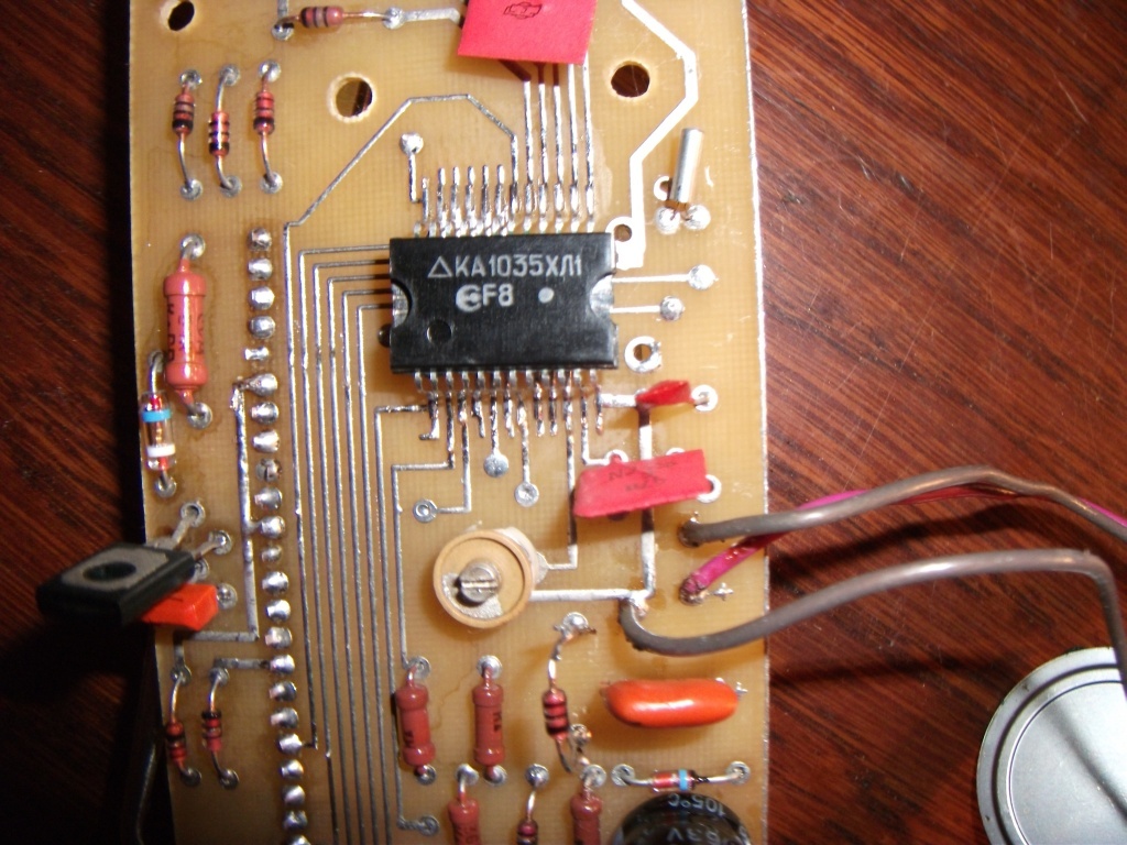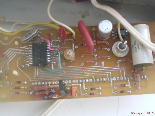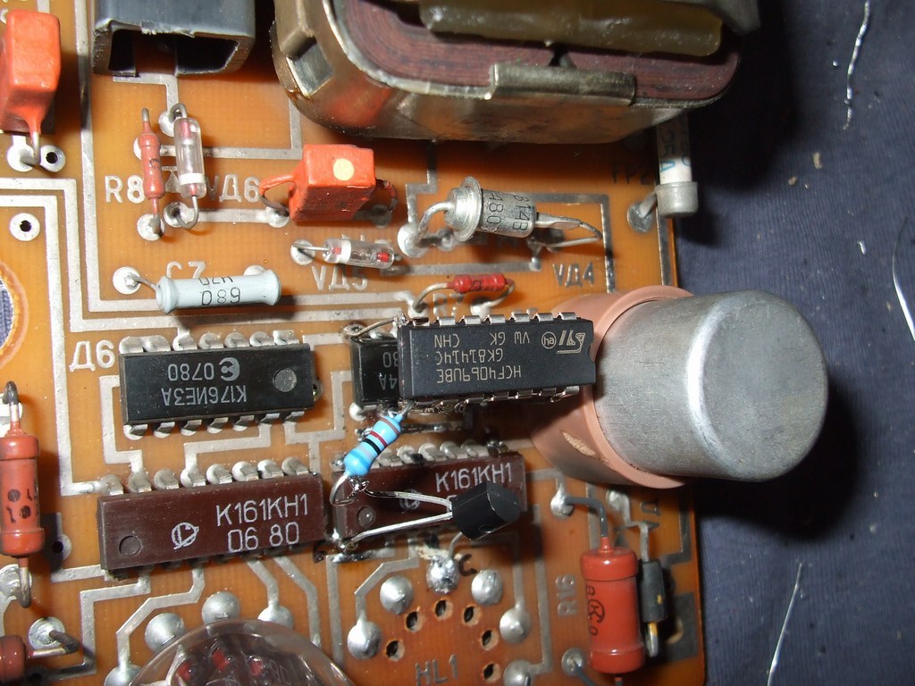 Az óra tízes helyiérték ugye "sötét"-1-2 állapotot vehet fel, emiatt a ruszki nem pocsékolt drága IC-t, hanem 2 nagy bumszli narancssárga tranzisztorral oldotta meg. Ezeket ugyanúgy a számláló IC-k hajtják meg egy bázis ellenálláson keresztül. Azok konkrétan a kapcsolásin olvashatatlanok, de mérve 65KOhm értékű mindkettő. Innen gondoltam akkor a hibás IC hibás kimenetét egy BC212+65K bázisellenállással próbálom majd kiváltani.A nagy orosz tégla tranzisztor mennyiben hasonlít a BC212-re? Nézegettem minden oldalát, de semmi jelölés sincs rajta egy hatalmas "B" kivételével.