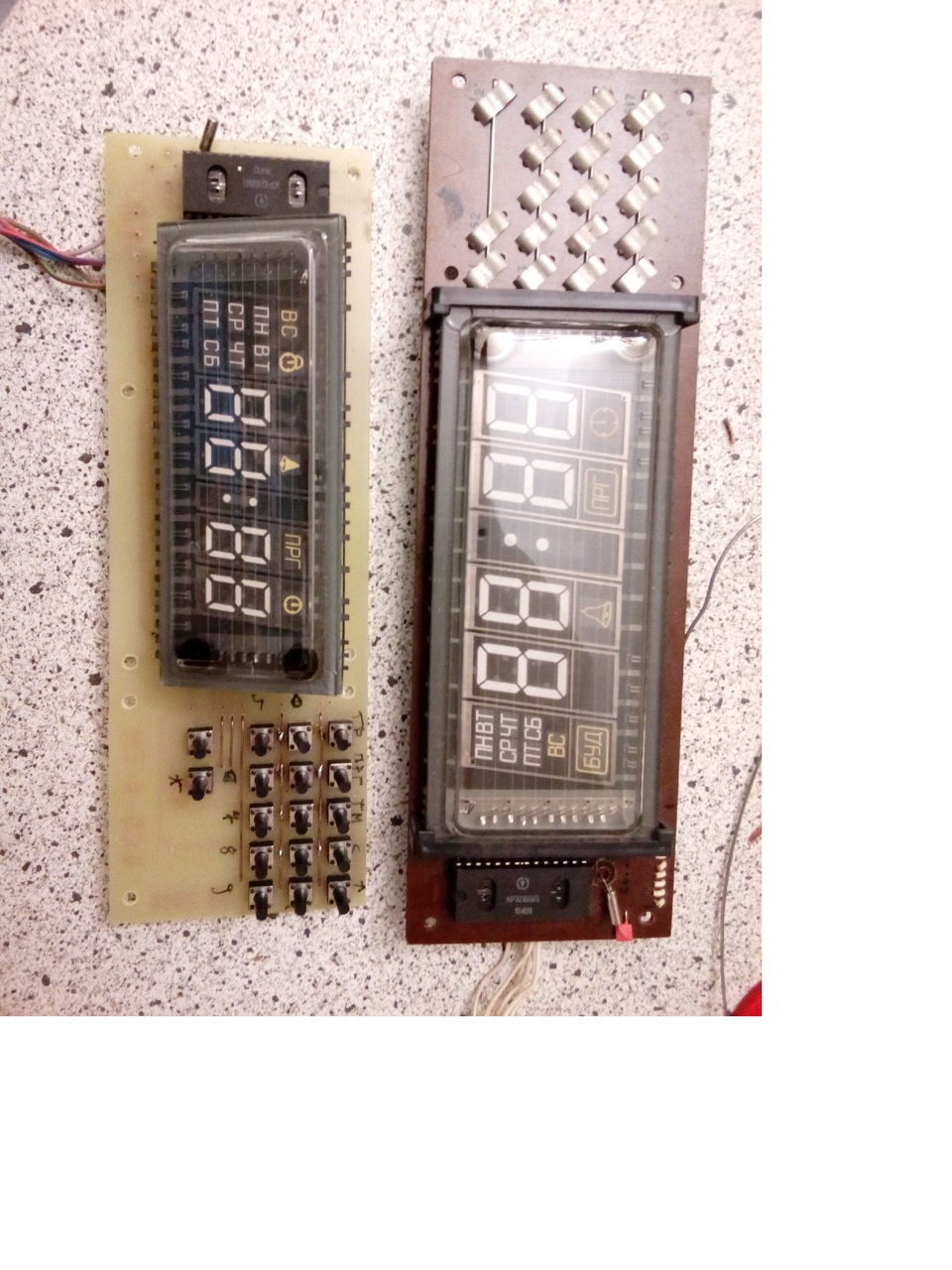 Előkerült a sufni mélyéből több Elektronika-2 orosz VFD óra. Bővebben: Link Mindnek azonos a baja, a 2 elektrolit kondi csere után (20uF, és a hálózati puffer..) A csipogó másodpercenként csipog, a kijelző sötét, fűtése megvan, kijelző fűtése nem szakadt. Van ennek valami típus nyavajája? Elég hihetetlen, hogy mindnek ugyan az a baja.. ![]() Esetleg valami olyan rajza van valakinek, amin az IC-k funkciói is kideríthetők? Köszönöm! A hozzászólás módosítva: Jún 26, 2016