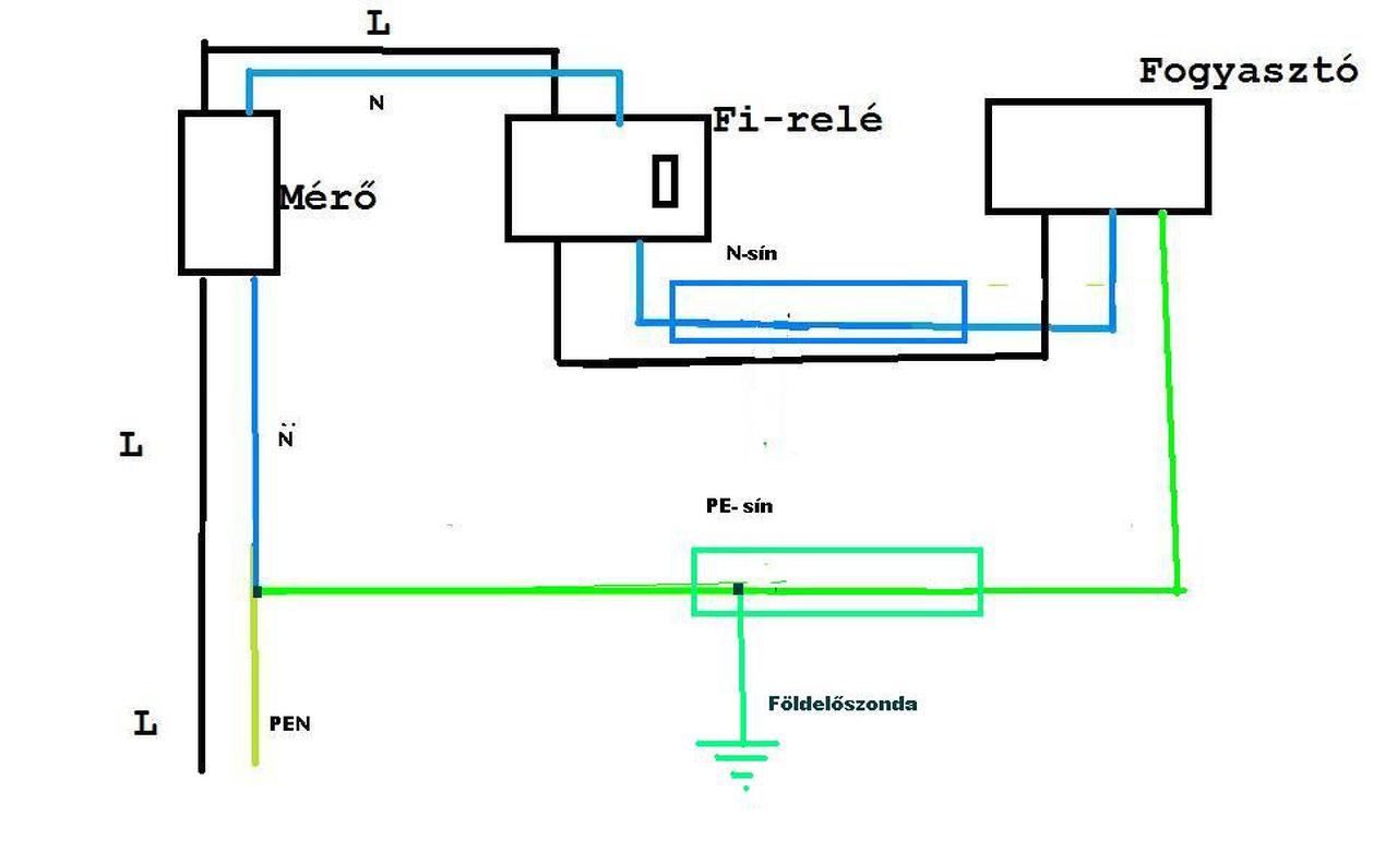 Az éjszakai áramnál is jött ki két vezeték az órából gondolom a le párhuzamositott Pen vezető a masik órától! Azt is újra szétvalasztottam leföldeltem! De próba lámpával lepròbaltam mindent működik szépen a rendszer! Ha a te rajzodnal az oszlopon vagy a földkalábelon lesz Pen szakadas akkor ugyan úgy veszélyes lehet!