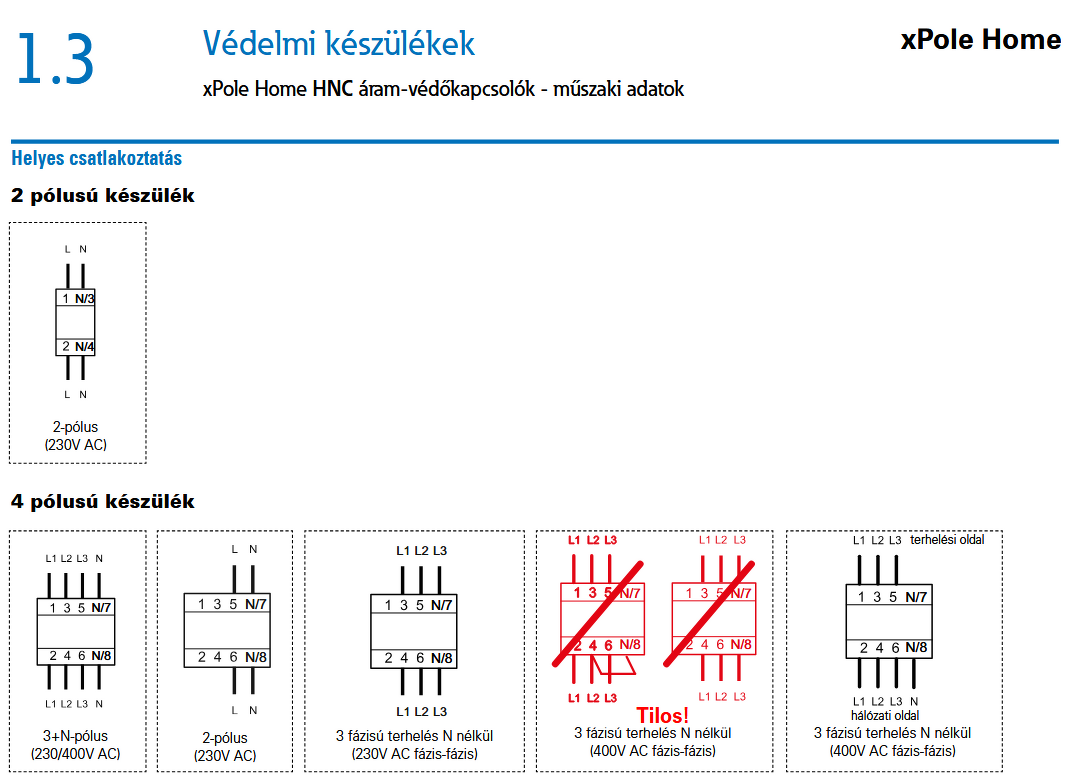 Háromfázisúnál gyártófüggő hogy hova van bekötve a tesztgomb. Általában a fázis és a nulla közé, de a legrand pl két fázisra köti. Az eaton ajánlja a 4 pólusút egyfázisúnak bekötve, de a 3L+PE fogyasztókhoz csak úgy, hogy a betáp oldalon a nulla is csatlakozik. Elvileg csak a tesztgomb miatt szükséges.