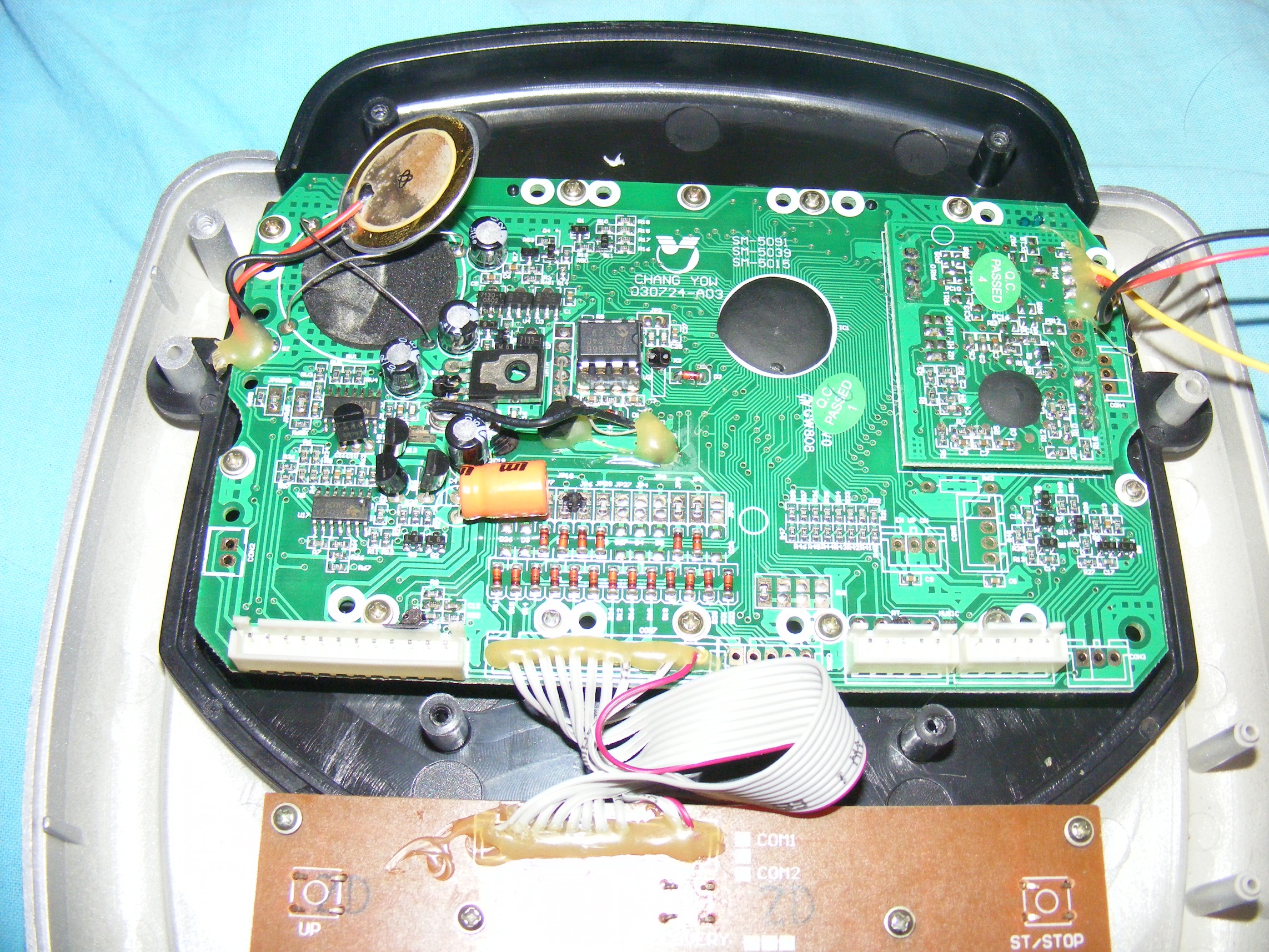 A problémám a következő: Van egy Buffalo ERMM8600 ellipszis trainerem(használtan vettem). a rendszer egy 9V, 500mA adapterről működik. A problémám az, hogy csatlakoztatom az adaptert, és a gép elkezd ki-be kapcsolni, és mindig sípol egyet. Megjelenik minden a kijelzőn, majd eltűnik, aztán megint sípol, megint megjelenik, megint eltűnik, és hiába nyomok akármilyen gombot, hiába kötöm le a pulzusmérőt, mindig ezt csinálja. Nem sikerül belőle semmit kicsikarnom. Az baj lehet, hogy 600mA-es az adapter és csak 500mA-nek kéne lennie? Van még a gépen egy elektromos mágnes-fék állító. Annyit tesz, hogy egy kis motor, meg egy elég brutál áttét hozzá, és ez ahogy forog, távolítja-közelíti a mágnest a lendítő kerékhez(a motor tuti működik, mert direktbe bekötöttem, és ment).