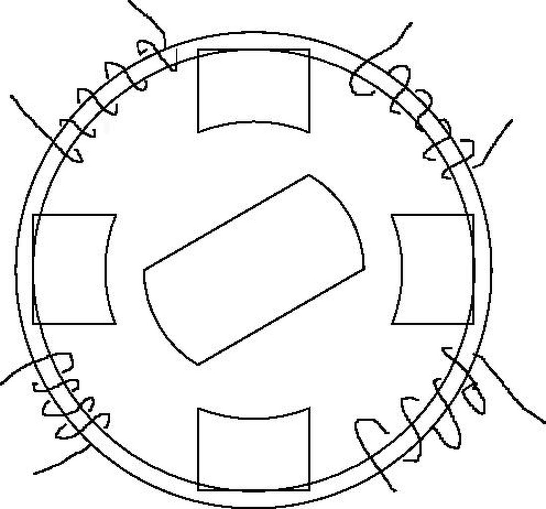Van egy toroid trafónk, hogy hogy van tekerve lényegtelen, lehetne akár a szokásos módon is. A mágneses erővonalak 99% a vasmagban záródik, a szórás elhanyagolható (fogalmam sincs mennyi, csak tippelek). Hogy mi van a toroid közepén lényegtelen. Amennyiben kis légréssel tudod kitölteni trafóvassal a közepét megnöveled a szórást, mert lehet kisebb az ellenállása a két légrés és a közepén mint körbe szaladva. Hogy rövidebb legyen az út a közepén szerintem 1mm alatti rés kell, ami nem lehetséges a drótok miatt. Mit gondoltál te: Alap esetben simán toroid trafó, kicsit fura a vasa, a törések okozhatnak mágneses szórást, és ronthatja, lekerekítésekkel teljesen elhanyagolható. Ha beletesszük a rotort, közepét, úgy hogy a vasra nézzen mit kapunk. Amennyiben egyetlen általad rajzolt tekercset gerjesztünk, a mágneses erővonalak egy része körbe megy, egy része szóródik és lesz ami a rotoron keresztül záródik. A rotort megforgatva változik a mágneses tér iránya és így a kimenő feszültségen (másik tekercs) is meglátni a forgatást. Két tekercset gerjesztve hasonló a helyzet, kérdés milyen kis légrést tudsz elérni és milyen arányban szökik a rotorba az erő. Amennyiben lényeges változást tudsz elérni látványos eredménye lehet. Amit gondolsz hasonló a hegesztőtrafó szabályozásához (vasmaggal), csak gyorsan mozgasd. A frekvencia a vasmagban (rotor) fenmaradt mágneses térerősség hatásában fog érvényesülni. (növeli szerintem a primer áramot)