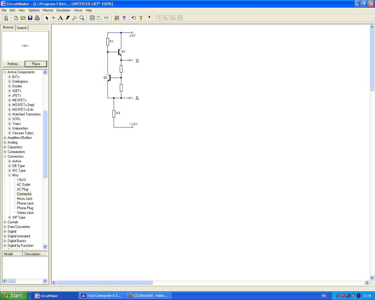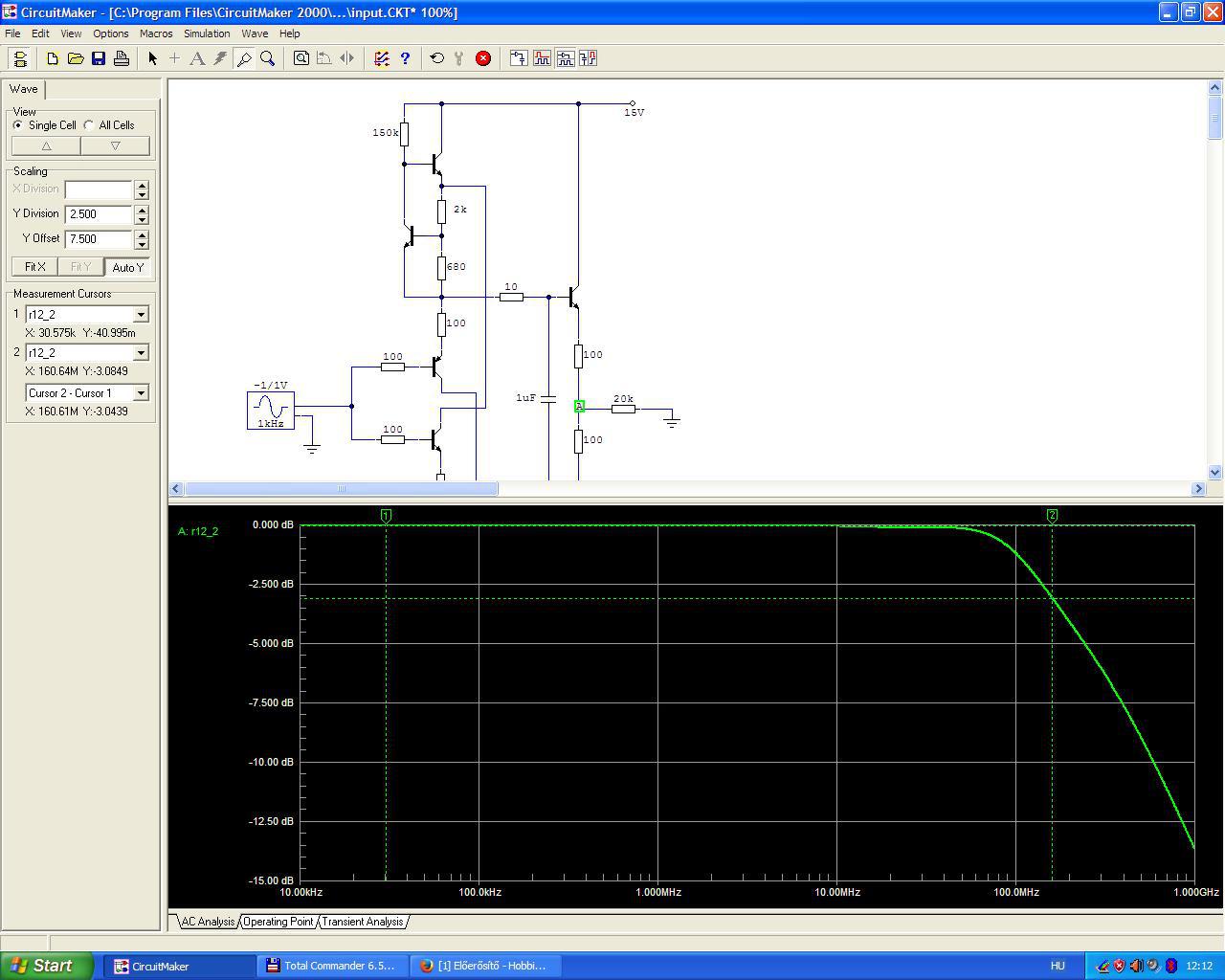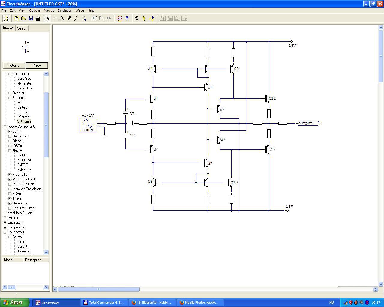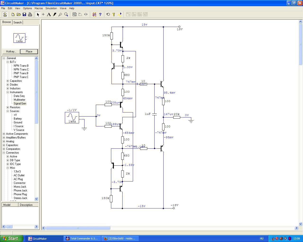 Már "csak" azt a fránya "V1-2" ideális feszültséggenerátort és a bemeneti impedanciaillesztést kellene jól kitalálni. Ezt a legnehezebb.
