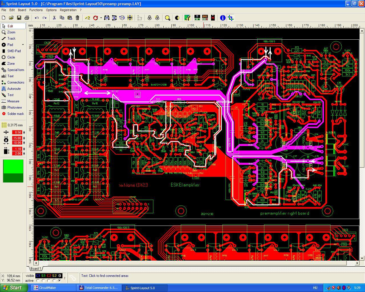 Elkezdtem nyákot is tervezni neki, de teljesen más koncepcióval mint a tiéd, nálam pl. alap dolog lesz az, hogy minden egyes ellenállás 2W-os méretű (mert olyanból léteznek akár nagyon jók is), és nem lesz benne trimmer semmilyen sem, az is 2W-os ellenállásokkal lesz kiváltva. Aztán majd meglátjuk.