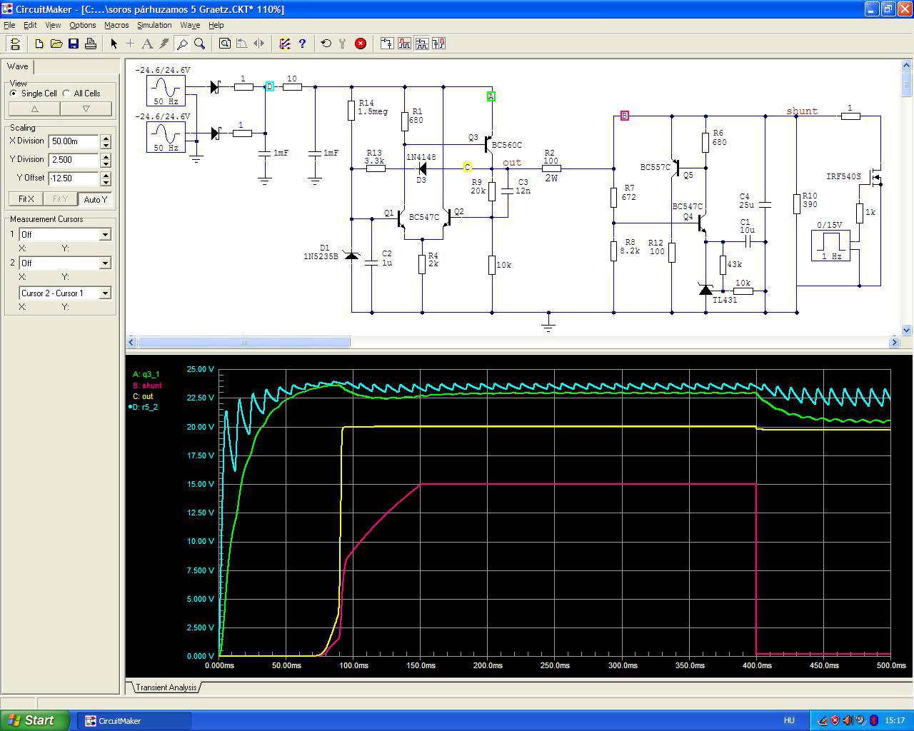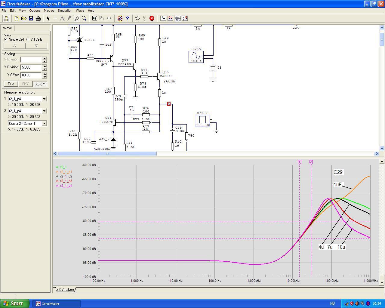 Ami biztosan nem elég jó, vagy úgy is mondhatnám, lehetne sokkal jobb is - az a feszültség stabilizátor. Már akkor éreztem amikor "mókoltam" vele, hogy ennél valami sokkal jobb kéne, de mi? A passzívnak nagy a kimeneti ellenállása és ezt már többször, több mindenen leteszteltem, hogy akkor inkább legyen aktív. De ennek meg a kimeneti impedanciája emelkedik a frekvencia függvényében és ennek megfelelően az impulzus-torzítása nagy. Jó... nincsenek 1 MHz-es impulzusok a zenei jelben, de ez a túllövés akkor is jelen van a kimeneten és ez engem zavar. Emellett valószínűleg meg is hallatszik, mert minden meghallatszik ami kicsit is tökéletlen. Itt állok (ülök) tanácstalanul már hosszú ideje, hogy mi lehetne az a megoldás ami nekem is tetszene, de nem jött az ihlet. Aztán mégis. John Broskie leírta a varázs mondatot: a sönt stabilizátoroknak nem nő fel a kimeneti impedanciájuk. Nem pontosan ezt írta, de ez volt az amire vadásztam. Mondanom sem kell, hogy azóta eltelt vagy 30 szimuláció (ami nálam a holdfázist helyettesíti).