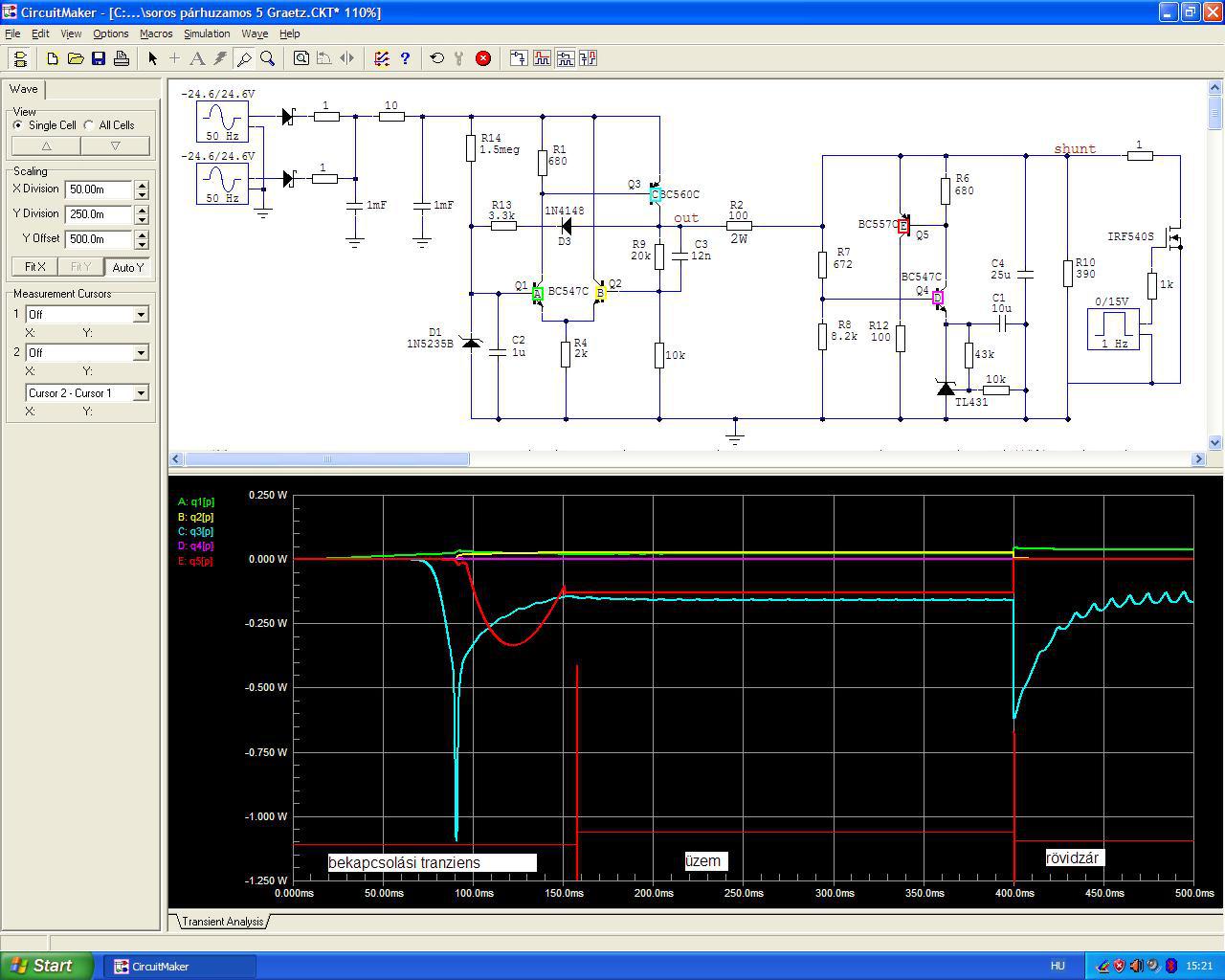 Mitől tud sziszegni egy erősítő? Attól, hogy túllövések vannak a közbülső erősítő fokozatokban. Ezt egyetlen emitterkövető is meg tudja csinálni ha nincs jól illesztve. Akkor tud még sziszegni ha visszacsatolatlan, vagy attól is ha visszacsatolt. Nagyon gyorsnak kell lennie és nagyon jól átgondolt felépítésűnek. A visszacsatolási tényező és a fázismenet nem változhat a hangfrekvenciás sávban. Erre törekedtem amikor leültem a szimulátor elé és a nagyon sokadik szimuláció után azt gondoltam, ezt meg fogom építeni.