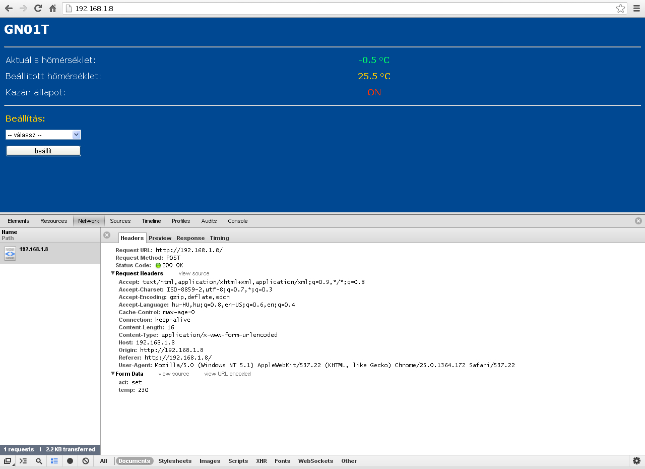 Szia, köszi a választ. Mellékelek egy képernyőképet. Én Chrome-ot használok, ott a fejlesztői eszközök között lehet monitorozni a küldött adatokat. Amit látsz a képen megy is ki sorban, addig hogy "Origin: http:". és itt megszakad és jön a favico kérés: GET /favico...