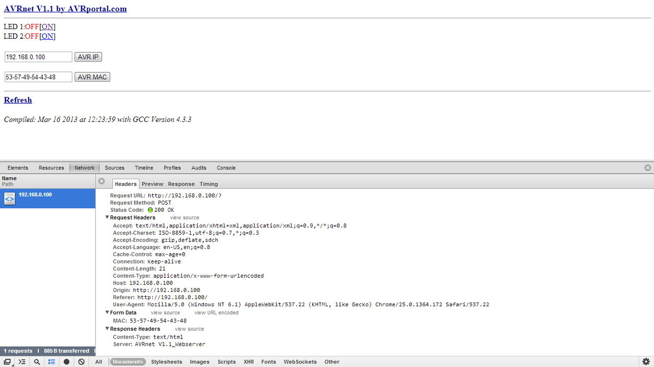 Amikor én próbálkoztam, bár az AVR-el volt, nem volt probléma. Ha a "GET"-tel megy, akkor a "POST"-tal is kell. Az eredmény ugyanaz a mikrovezérlő oldalán. Arra gyanakodnék, hogy a böngésződ nem küld paramétert "POST" esetében. Én Firefox-ot használok + Live HTTP headers add-ont, amivel látom, hogy milyen fejlécet küldött. Ez sokat segített hibakereséskor. Ha látod, hogy a paraméterek a fejlécben vannak, akkor már csak a vezérlőnél lehet probléma. Én a következőt használtam: AVRnet Remélem hasznodra lesz.