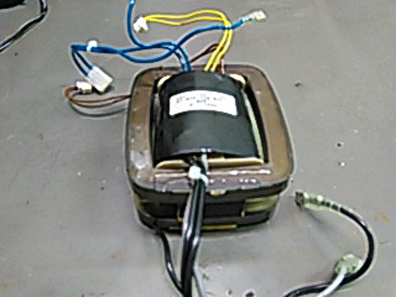 Ez a hálózati transzformátor a zárt vasmagú transzformátorok megcsúfolása de mégis működik. Középen van egy lemezelt I mag, amire kétoldalt tekercselt szalagmag van rárakva, a szorító szerelvényeket levettem a kép miatt. tulajdonképpen zárt de az erővonalaknak kanyart kell tenni.