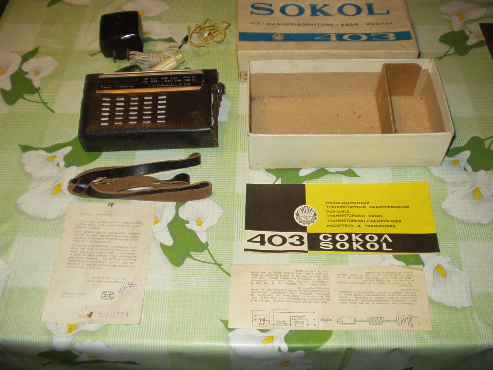 Sokol 403 nekem is van, csak éppenséggel: semmije sincs meg, hiányzik az egész hátlapja, már nem marad a helyén a ferritrúd (vissza kellene rakni a tartóját a panelt is tartó csavar alá) és vissza kellene forrasztani a vezetékeket az elem csatlakozójára. Amúgy még működőképes.