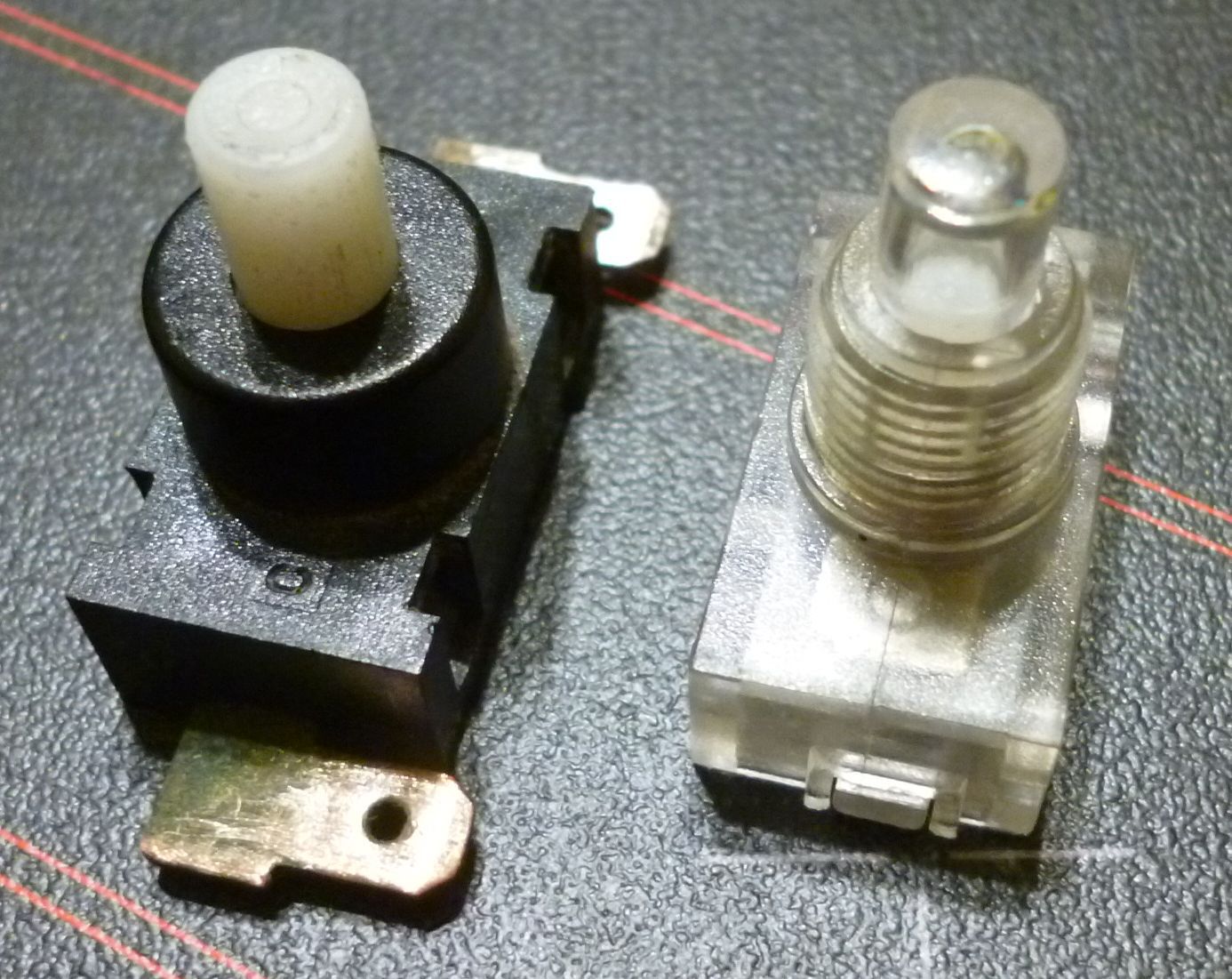 Porszívókban, éjjeli lámpákban ... gyakori ez a kapcsoló, különböző kivezetésekkel. Csak most jöttem rá egy lábkapcsoló javítása közben, hogy a szögletes test mérete kb. 24x12x8 mm, azaz 1 x 1/2 x 1/3 hüvelyk.