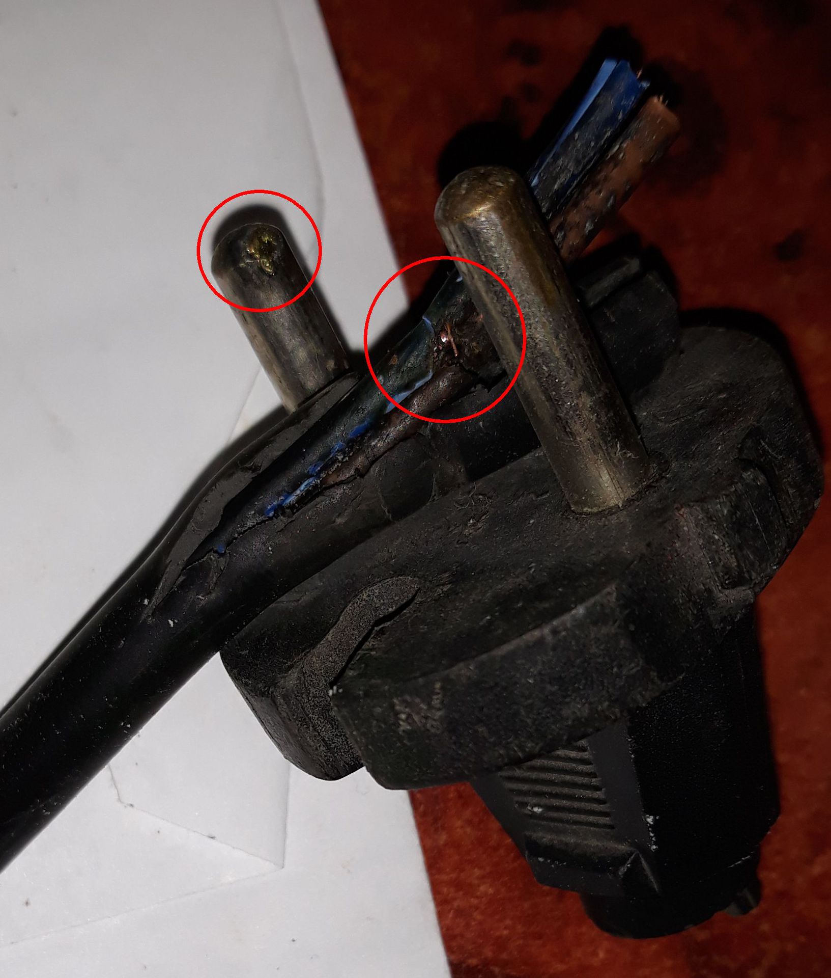 Hazavittem, szétszedtem. Rögtön egy párhuzamos varisztorral kezdődik, biztosíték semmi. De a zárlatnak nyoma sincs, sem szemre, sem mérve. Eleve olyan vékonyak a fóliák, hogy a varisztor zárlata esetén ott elfüstölt volna a vezetősáv. Akkor meg mi lehet? Emberünknek is verte a biztosítékokat a kazán vezérlő paneljén... Izzón keresztül kapott áramot, nem világít az izzó. A termosztát működik. Lehet kapcsolni is, a feszültségei is rendben vannak. Nyoma nincs zárlatnak. Én ezt nem értem...aztán lefekvéskor próbáltam újra összerakni. Ma vissza ahhoz a kábelhez, amivel nekem is zárlatot csinált. Van rajta egy olvadás nyom (nem belülről, hőlégfújóé volt, kívülről melegedett meg), szétvágtam, de semmi. Néztem a dugót, a tövénél, feszítem semmi. Fordítok rajta egyet, feszítem, hopp, látszik a belső ér, sőt még valami... Szétvágtam és ez tárult a szemem elé. Az első próbakábelem a dugó nyakánál sérült volt, nem látszott. Pont sikerült úgy bedugni, hogy az eltört szigetelésnél zárlat lett. Ez aztán megvezetett...illetve a szerelő is csinált valamit, mert ő enélkül is pukkantott... Murphy dolgozik!