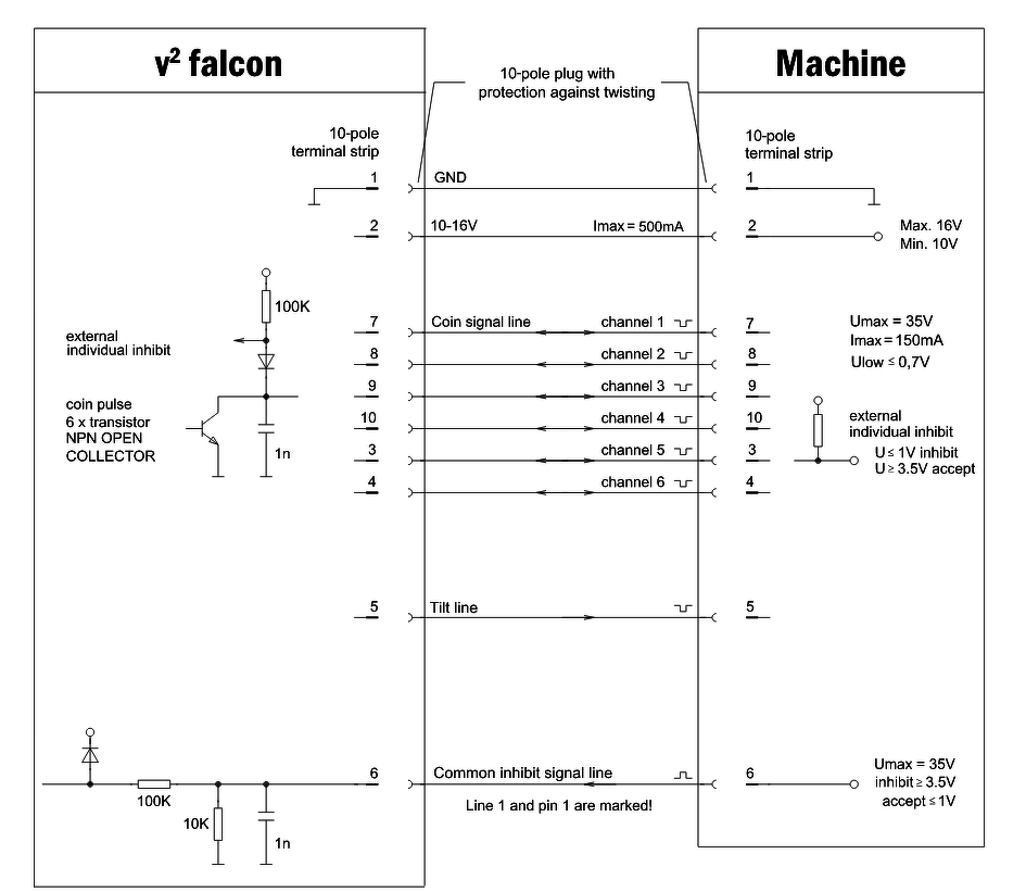 Egyszerű, nyitott kollektoros kimenete van, lásd mellékletek. Ha az érmevizsgáló belül piszkos, akkor takarítsd ki. Koszosan is romlik az érzékenysége, nem is kicsit. Ha a bedobott érmét elfogadja, akkor azt érezni fogod mert a terelő mágnest be fogja húzni (már ha nem a helyén próbálod). Kb. 3 cm magasságból ejtsd bele az érmét, miközben függőlegesen tartod a vizsgálót, különben biztosan nem fog működni. Ha túl gyorsan vagy lassan érkezik az érme, nem fogja elfogadni, hiába működik. Az oldallapot le lehet venni, egyszerű 7805-ös stabilizátor IC van benne. Nem nagyon szoktak ezek elromlani, általában egy újratanítás hiányzik nekik két-három évente.