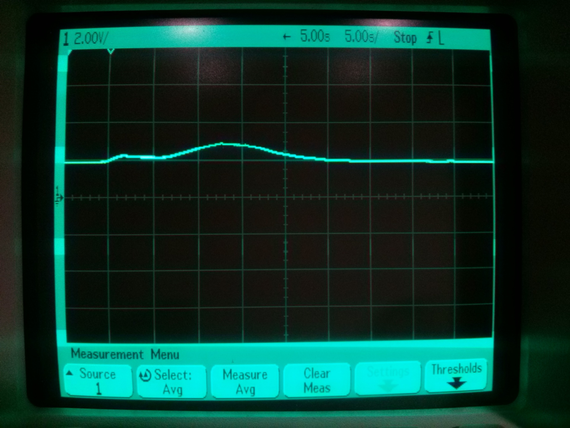 Korábban jöttem haza, és gyorsan kicsit elrontottam a kapcsolást. A táp kapott egy soros 1 Ohmot, meg az egyik puffer is. Ráadásul 120µF-ra növeltem, hogy ne legyen annyira pontos. A szervó ellenállásait 10k-1M között pár értéken leszimuláltam, és látszik az eltérés. Le kellene hidegíteni valahová, csak mindenhol visszabeszél. Megjelenik a pukli.