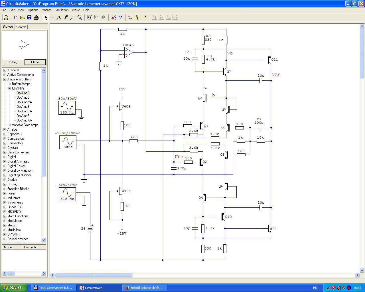 Igazándiból az van, hogy most ez a "bastode" bemeneti fokozat tetszett meg. Érdekesnek találom és talán megér annyit, hogy elszórakozzak vele valamennyit. Nem kell előfeszíteni a bemeneti komplementer emitterkövetőt, mint a daimond kapcsolásnál. Ha pedig közösítjük az emitterkövetők bázisát a bemeneten, egyéb "furmányokhoz" kell folyamodni amikre még szerintem senki nem talált ki jó megoldást - csatolókondik, áramgenerátorok, kétkörös visszacsatolás - ez sem jó.
