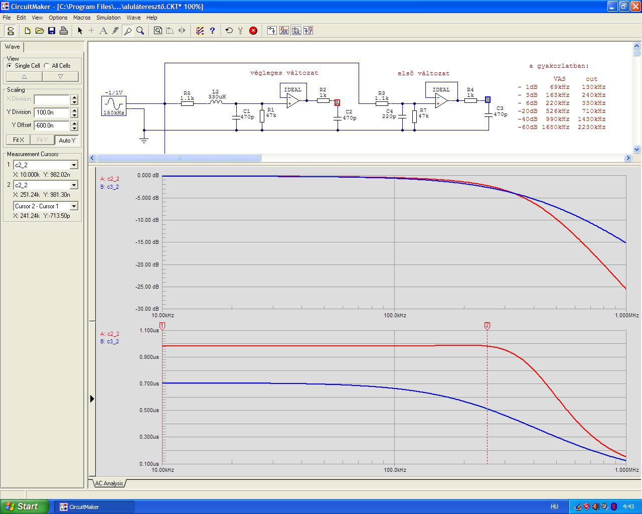 Meg is mértem, hogy viszi át a négyszögjelet. Lehetne gyorsabb is, de akkor mit fogok csinálni húsz év múlva. 1 MHz-en 13,3 fok a fázis-késleltetése, tehát olyan 5-10 MHz körül lehet a -3 dB-es pontja - kisjelűen (meg is mérhettem volna, de elfelejtettem). Hát... nagyon kíváncsi vagyok már a hangjára. Ilyenkor szoktam elkapkodni/bebakizni/elcseszni, de most nagyon óvatos leszek... ráér akár kedden is megszólalni, vagy talán még szerdán is. Idézet: „mert ha most megcsinálom a "világ legjobb erősítőjét" akkor mit fogok csinálni jövőre, vagy esetleg húsz év múlva : )” Nyugi, 100 éve csak ilyet épít mindenki