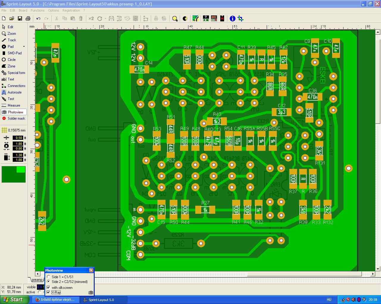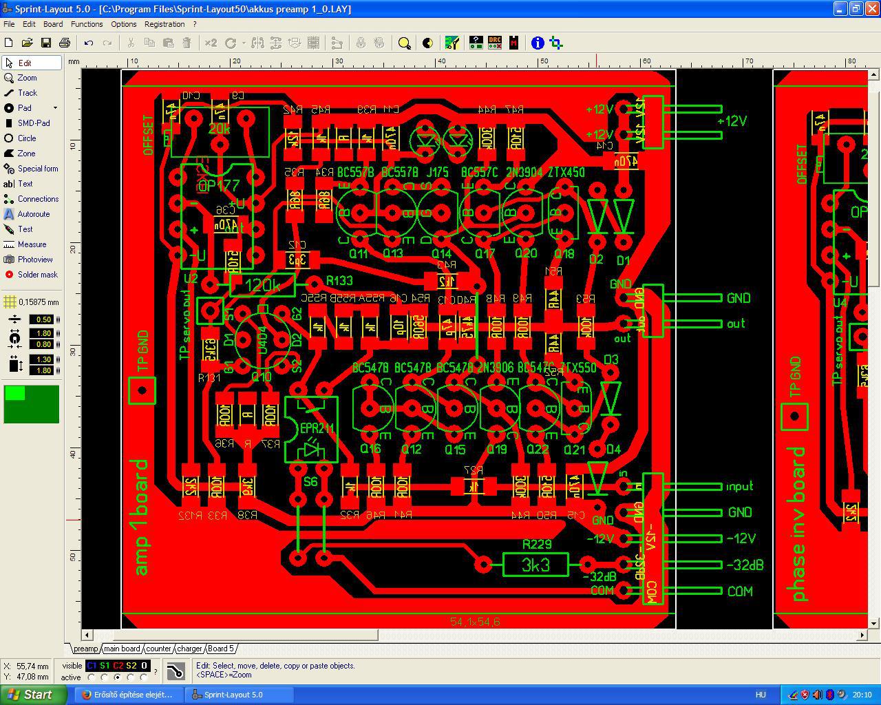 A múltkori kis malőrön túllépve, folytatom az akkumulátoros előerősítő nyákjainak tervezését.