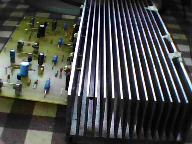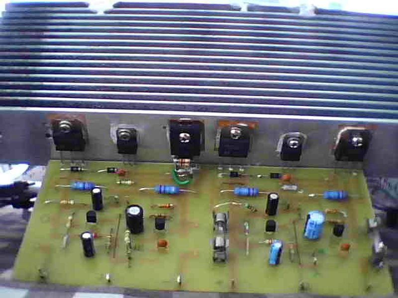 . Az offset beállításához bekerültek a potik 10mV van így a kimeneten nyugalomban. R7 1,5k lett végül, 1,8k lenne szerintem az ideális, de az nem volt itthon. Nem tudom meddig szokás ezeket a potikat tekergetni, 50-120mA-es nyugalmikat szoktak írogatni, a hasonló erősítőkhöz, 90mA-ra állítottam a nyugalmit.A földhurkot nem találtam meg, szerintem előbb kopaszodom meg, minthogy megtaláljam. Másik erősítőnél is volt már ilyen gond, de azt tataroztam kicsit, átkábeleztem, befuttattam ónnal a be és kimenetet meg a tápot és elmúlt. Idővel majd kap egy kapcsolóüzemű tápot, a mostani trafó úgyis kicsi neki, de szobába nem is kell az 50W. Bedobozoltam úgy ahogy van egyenlőre, később majd csinálok neki szép fadobozt. A hangja hát hogy is mondjam, eddig az erősítőim HIFI-khez és már elkészült erősítőkhöz hasonlítottam, mától ez nem így van. Eddig nem hallottam ehhez fogható erősítőt, mikor meghallottam valami mély vonós hangszert egy számban, hát jaj nekem mintha ott húzná előttem a nótát. Sokszor gondolkoztam rajta, hogy értékelik az erősítők hangját, dinamikus, lágy..... már én is hallom a dinamikát benne, rájöttem, hogy eddig ilyet nem hallottam. Haverom szerint kicsit mély a hangja. Ez az első tranzisztoros erősítőm és igen jól sikerült, bár sok macera volt/van vele, de megérte megépíteni.