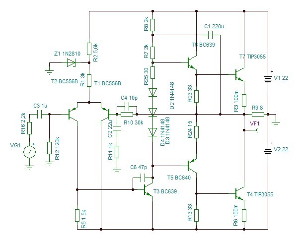 2n3055 öket kikötöttem és úgy próbálom életbe hozni. a gyűjtősáv= a hangszóró kimenet ami még nincs szűrve, A visszacsatolás, végtranyók emitterjei ide vannak kötve.