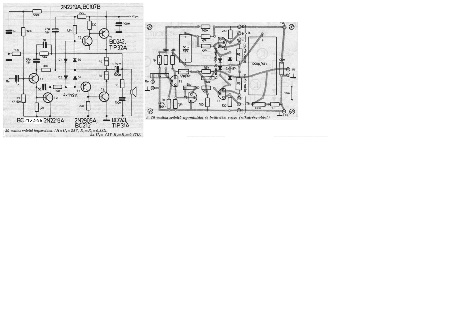 Ez az a kapcsolás, ezt a rajzot kerestem. Így már jobban fogok boldogulni. Egyébként szól az erősítő csak rettenetesen halk, a pontos ellenállás értékeket kell belepakolnom.