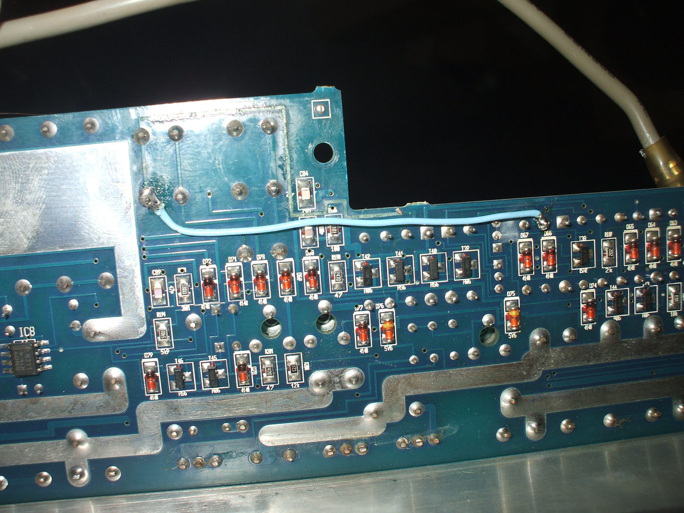 Valahol itt lehet a baj mert a 2 db 8k2 es ellnállás lábánál paskant el.
