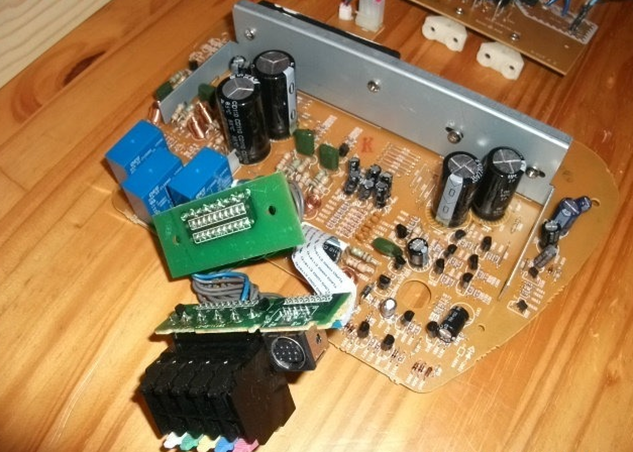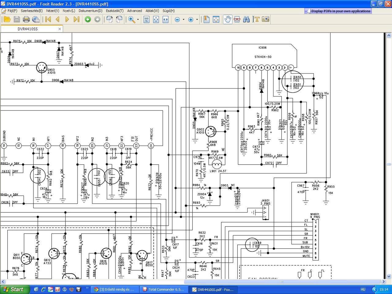 A következővel fordulnák hozzátok. Van egy 6CH erősítő ami 2db végfok IC-vel van ellátva.Egy (STK402-930) ami 5 csatornás és egy (STK404-070) ami 1 csatornás ez egy tápról vannak gyárilag hajtva ami egy közékcsapolásos táp (VCC+,VCC-,GDN). A probléma a következő az egy csatornás kimenet csak búg (STK404-070). A másik 5 tisztán szól (STK 402-930). Sajnos mivel nem vagyok kellően jártas az elektronikában nem sikerült ki derítenem a hiba pontos okát. Csak a sötétben tapogatózom de szerintem valami a tápellátásnál vagy a földelésnél van. Ugyanis ha kihúzom a hálózati 220V AC-ból akkor van hogy meg szólal az a bizonyos 6. csatornai amég a pufferekből kap némi áramot. De egyszer GDN nélkül is áram alá helyeztem és alacsony kivezérléssel tisztán szolt. Egyébként egy AKAI DV-R4410SS készülékről van szó. Sajnos saját fotókat még nem tudok fel tenni de itt van amit a neten találtam gyors.