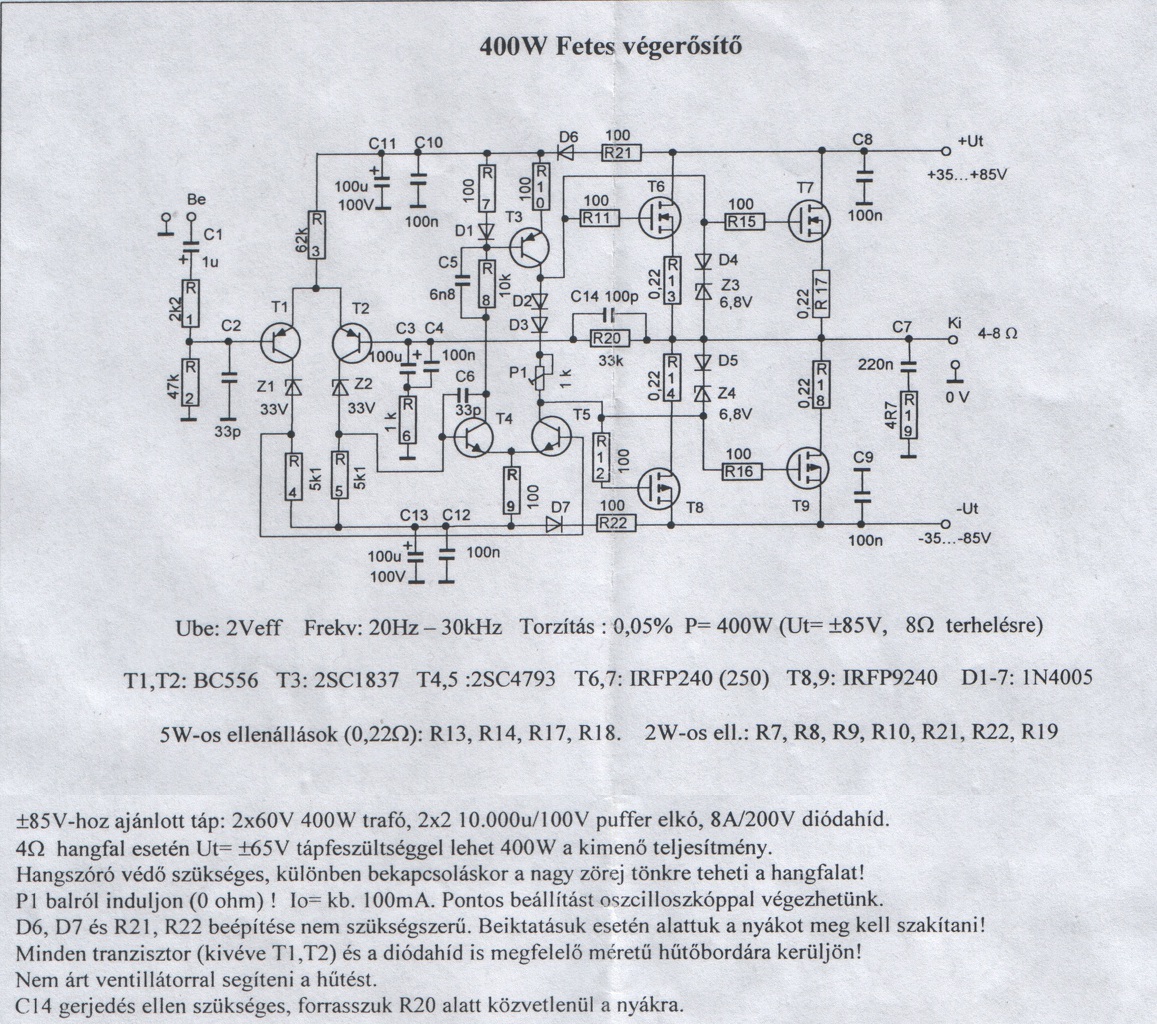 Kérdésem lenne egy olyan végfokkal kapcsolatba, amivel már vagy 2 éve foglalkoztatok ebben a topikban, konkrétan ez a baji elektronikás 400W-os MOS-fetes erősítő volna.