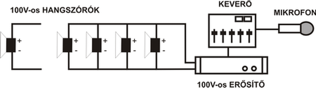 Kérek valakit, hogy abban segítsen nekem megmagyarázni ill. felhomályosítani, hogy ha adott egy erősítő, amelynek van 100 V-os kimenetei is, akkor oda 4 db hangszórót milyen módon kell bekötni.
