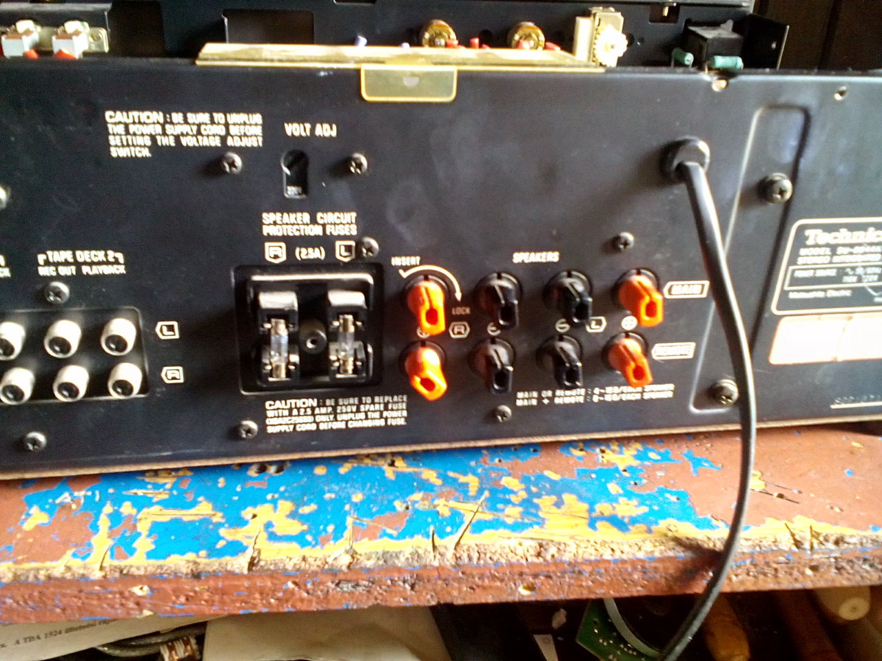 Nekem nagyon úgy tűnik hogy az a két olvadó biztosíték a hangszóró és az erősítő közötti hangfalvédelmet hívatott szolgálni.