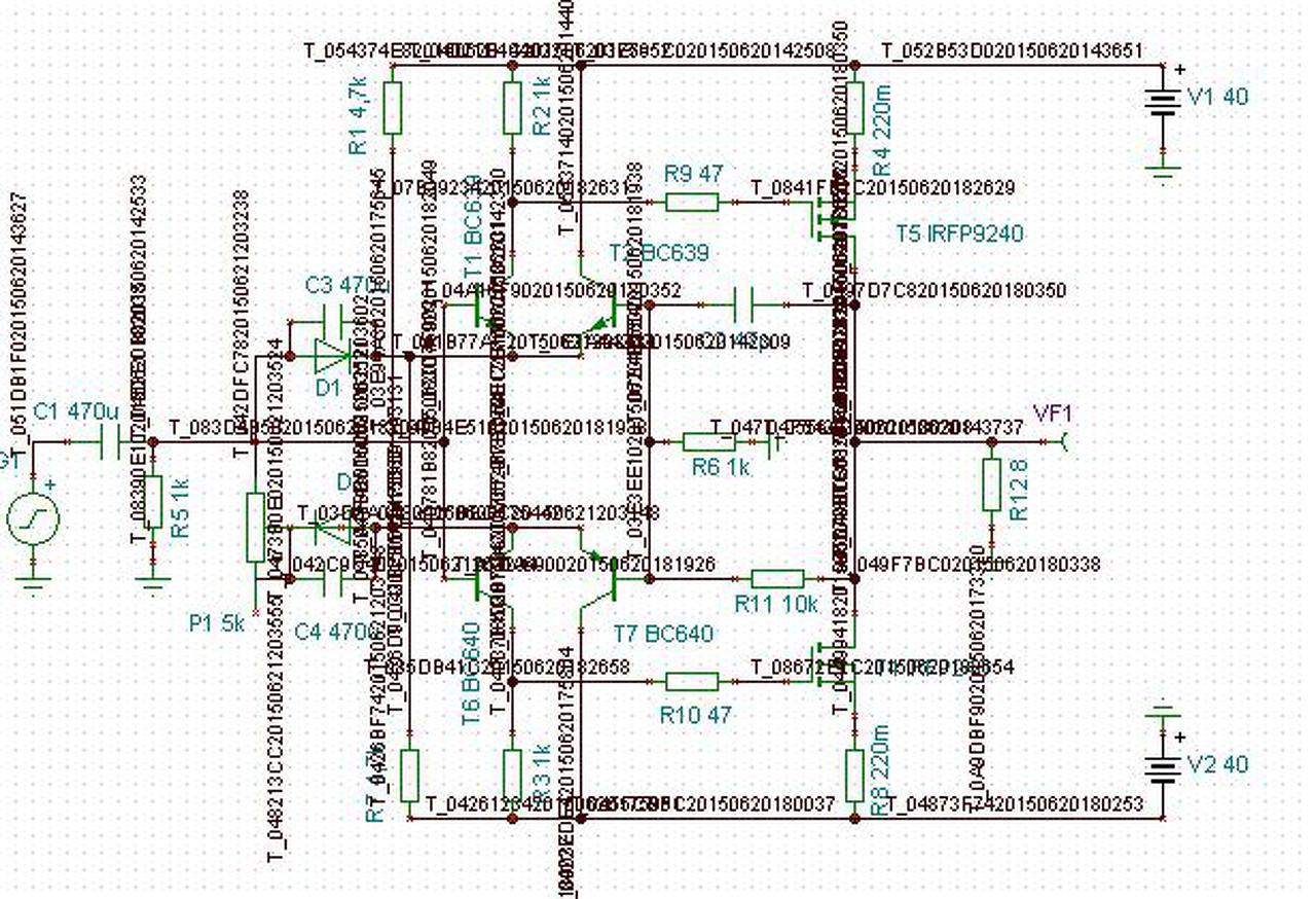 Üdv! A mellékelt kapcsolásról lenne néhány kérdésem. A T7, T8, T9 helyett nem jó TO-92 tokozású 100mA-es tranzisztor? Azért kérdezem mivel a FET-et feszültséggel vezéreljük, így minek kell oda akkora. Persze a környezetében lévő ellenállások értékeit is növelni. A D1 és D2 az led? Az csak a nagyobb nyitó feszültség miatt van ott? A bemeneti P1 potival a nyugalmi áramot állítom be? Valamint az lenne a kérdésem, hogy a FET- eknek mekkora hűtő felület kell, 8 ohm-os terhelés mellett, hogy csinálhatom e smd vel vagy a tht vel?
