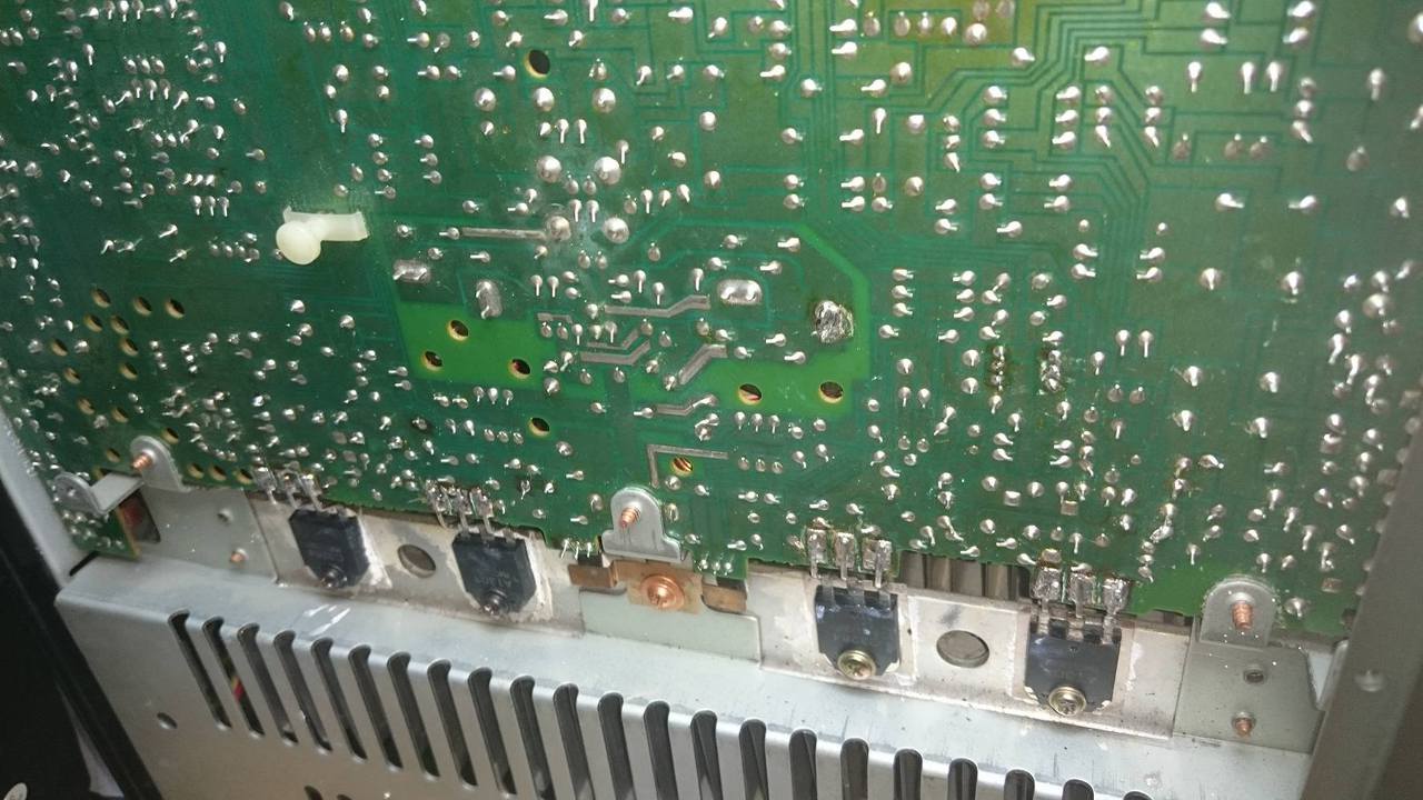 Sziasztok. Remélem valaki tud nekem segiteni. Van egy Yamaha a-500 javitáson nálam.végtranyokat cseréltem ellenállásokat amik kivoltak égve. . . Meghajtás teljesen jó. Egyik oldal indulna is. Tökéletesen relé elé bekőtöm a hangszórót adok neki jelet szóp szépen. A másik oldalon viszont .Nagy hondok vannak. Végtranyok emiter .collektorán -33 volt van égős védelemnél. Érdekesége a dolognak . ..mivel már mindent végig mértem ,diodák tranyok egytől egyik .ellenállások.elkeztem átpakolni a tranyokat a jo oldal és rossz oldal között. Mikr megcseréltem a 2sa1209 et. Elkezdett világitabi jobban azbégő. De a roszboldalon lecsőkkent a kimeneten a feszűltség-18v ra. A2sa1209 is cserélve lett ráadásul a nyák is szét van cseszve . (debdioflda álláson végig mérve .össze hasonlitva a másik oldala egyeznek az értékek) .Egyszerűen hol a hiba ??? Melékelek pár fotot hátha észre vesz valaki valamit.és kösz mindenkinek előre is.