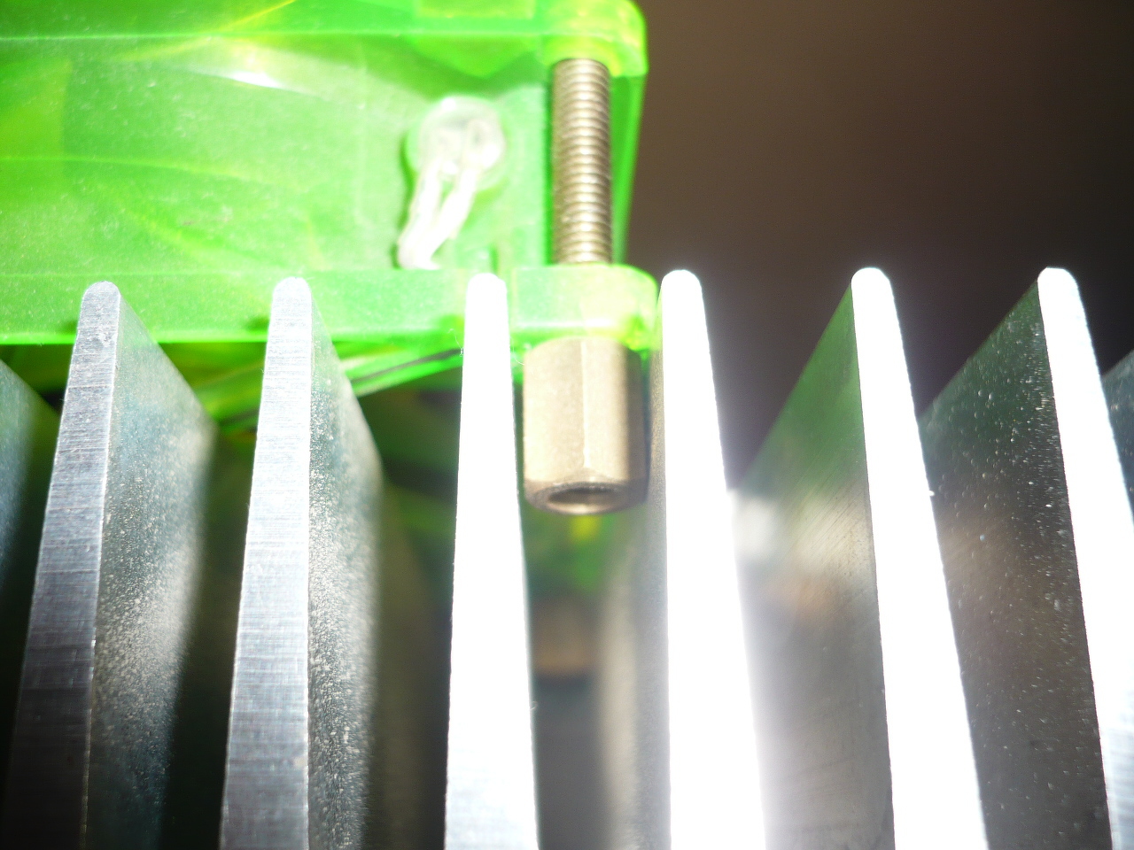 Én úgy szoktam hogy keresek olyan csavar anyát ami be tud szorulni a hűtőborda lamelái közzé. És igy fogatom fel a ventilátort. Lásd képek. |